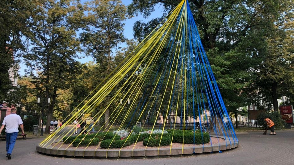 В межах святкування Дня Прапора і Незалежності в Івано-Франківську у сквері Міцкевича влаштували інсталяцію “Промені Незалежності”. Ідея проєкту належить Центру сучасного мистецтва.
