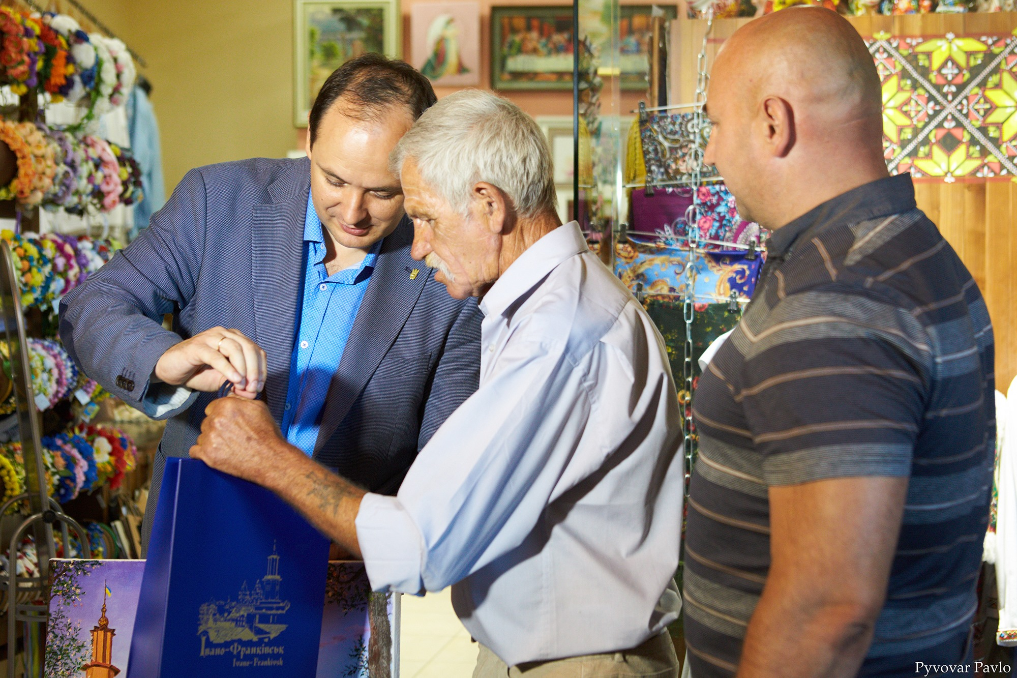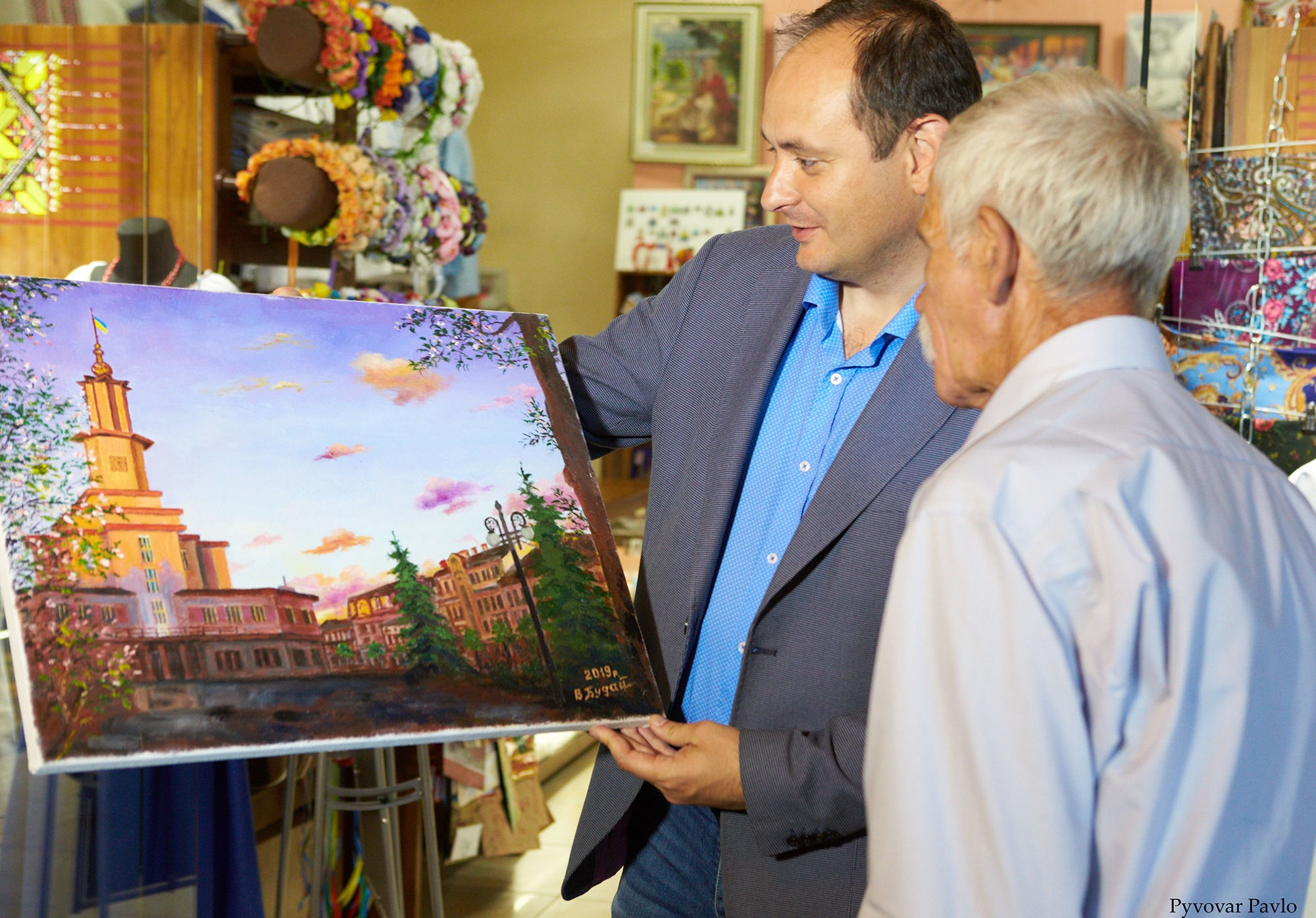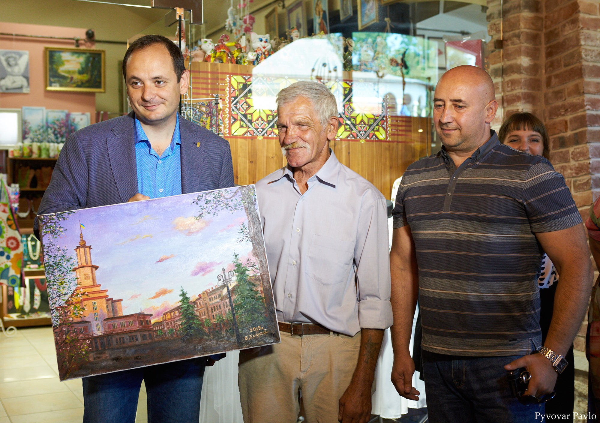 "Проте пан Володимир розбиває стереотип про безхатьків, як людей неосвічених та ні на що нездатних. Він створює чудові картини, які роз'їхалися цілим світом Каже, роботи не бракує, замовлень має багато. Володимир Терентійович - людина дуже світла. Від нього віє теплом, як і від його робіт. На завершення ми обмінялися подарунками. Він мені подарував картину головного символу міста - Ратуші. А я йому - фарби для нових полотен", - розповів міський голова Руслан Марцінків.