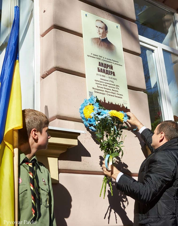 До 60-х роковин смерті провідника нації Степана Бандери в Івано-Франківську з'явилась анотаційна дошка отцю Андрію Бандері.