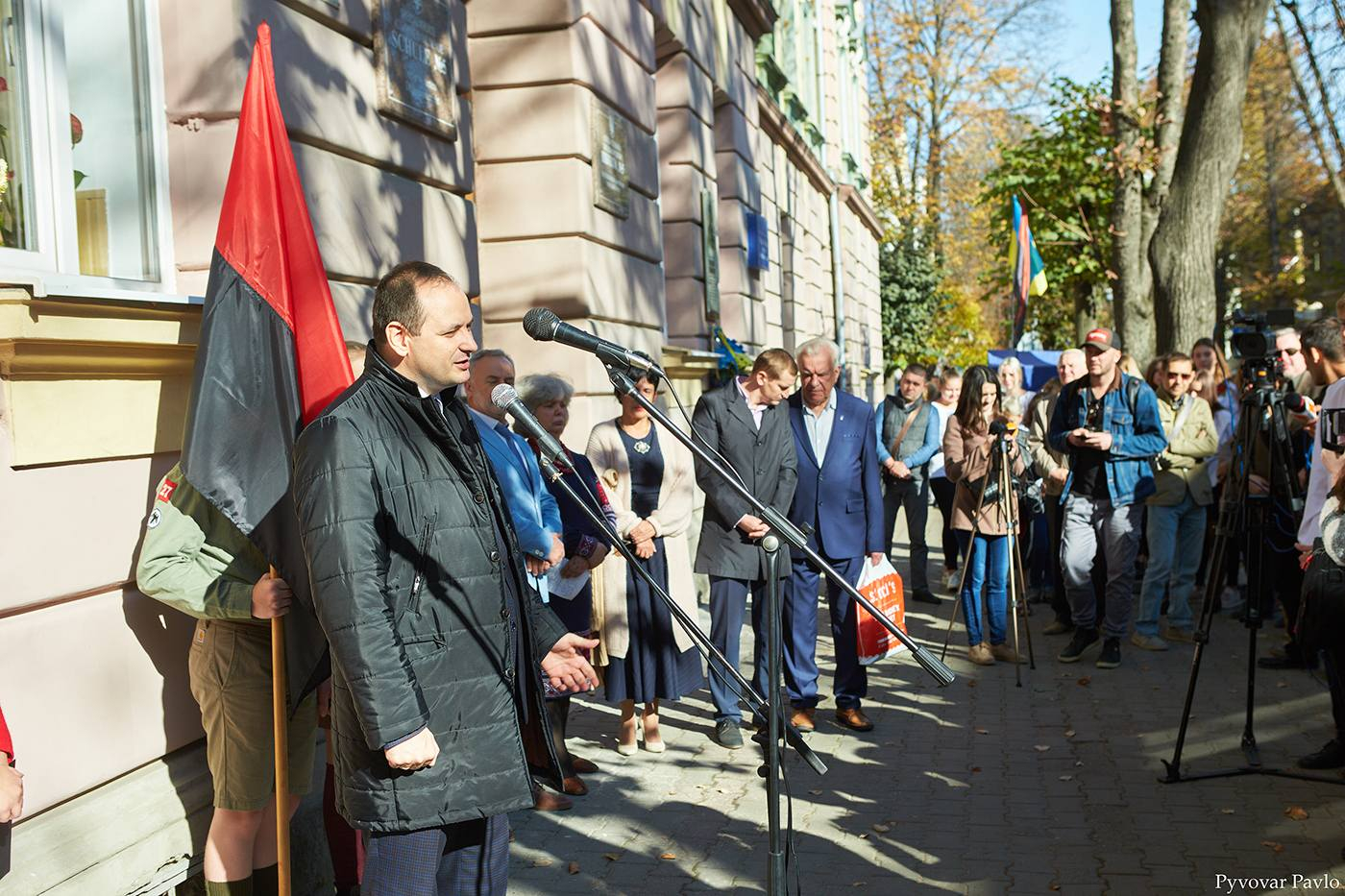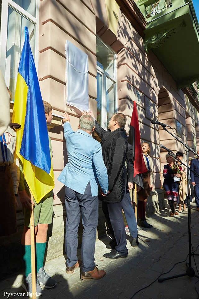 Дошку відкрили на фасаді школи №5. І дуже символічно, адже тут є таблиці Героям сучасної війни на Сході. Тому ця будівля як дзеркало спадковості визвольних змагань. Про це на власній сторінці у фейсбук пише міський голова Руслан Марцінків, інформує Фіртка.