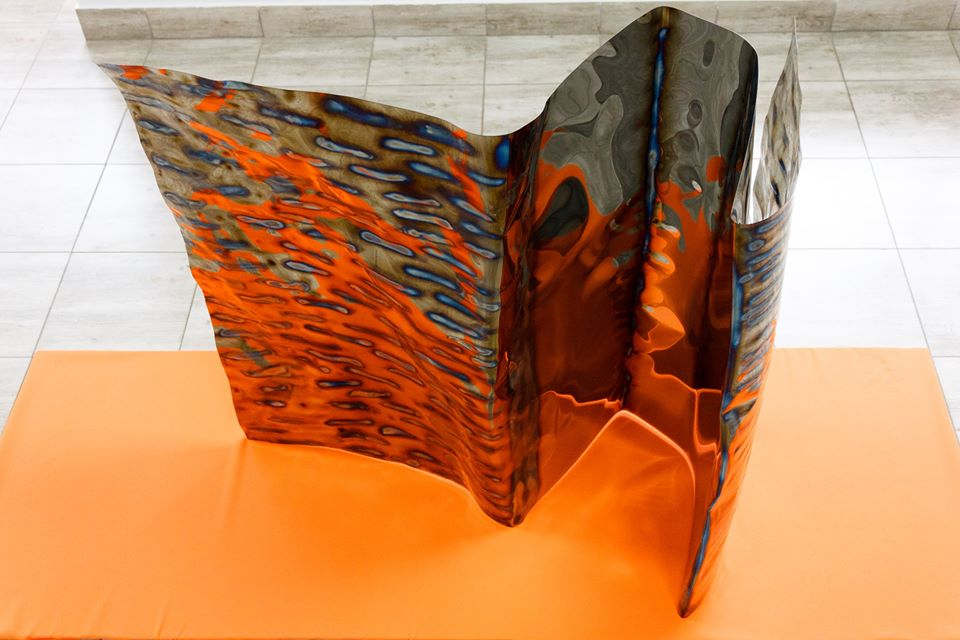 Серія експериментальних пластів з листів неіржавіючої сталі є продовженням творчих пошуків фактур для скульптурних об’єктів за допомогою термічної обробки, зварки, нагрівання площини, пише Фіртка.