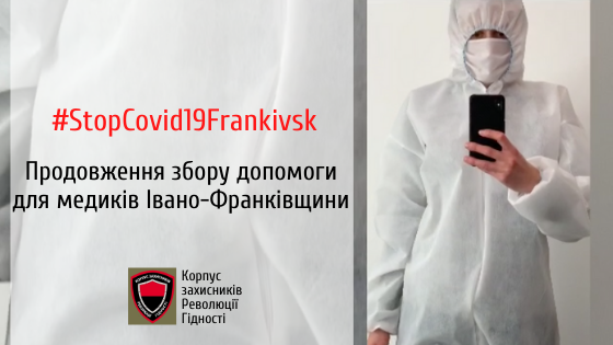 Організація "Корпус захисників Революції Гідності" за останню добу зібрала ще 10 400 гривень на виготовлення спецзахисту та респіраторів для медиків Івано-Франківщини.