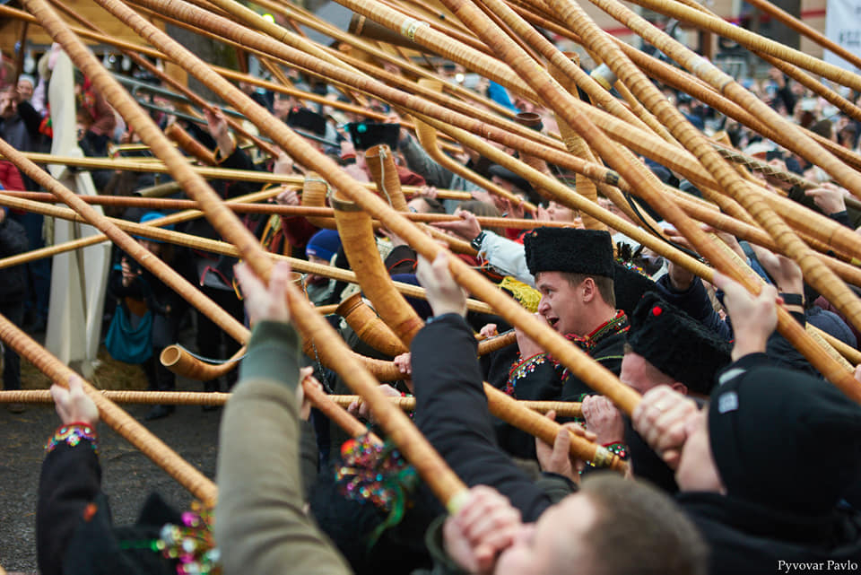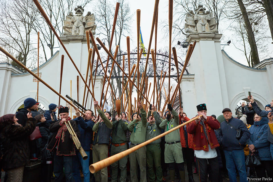У Палаці Потоцьких одночасно прозвучали 146 трембіт та карпатських рогів, пише Фіртка.