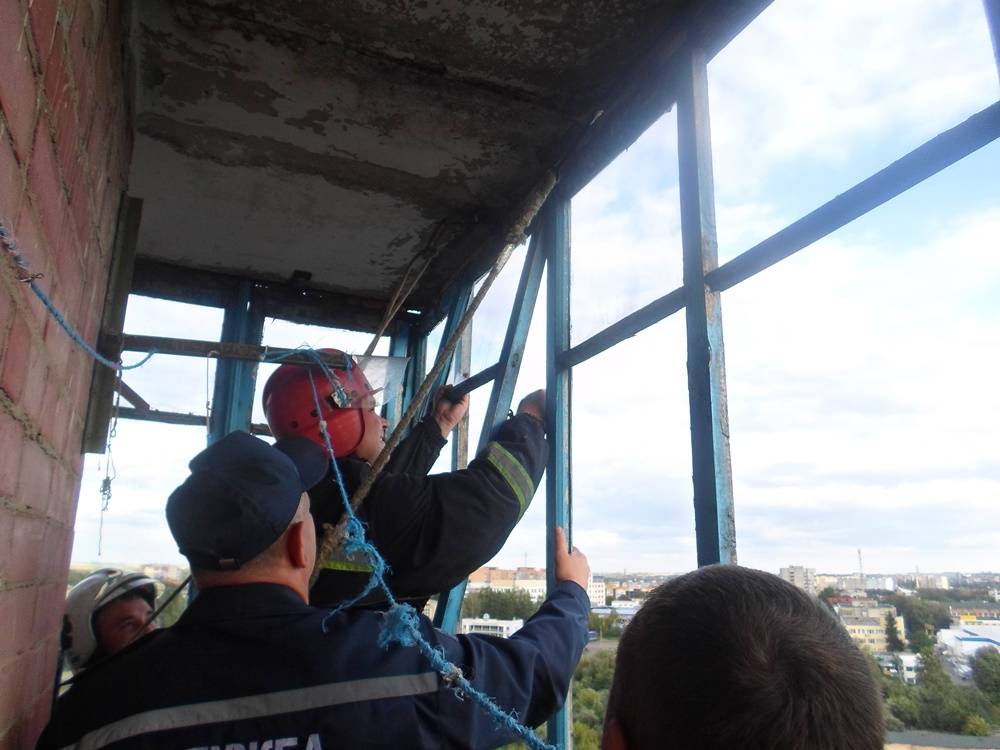 Рятувальники огородили небезпечну ділянку та демонтували дерев`яну балконну раму.