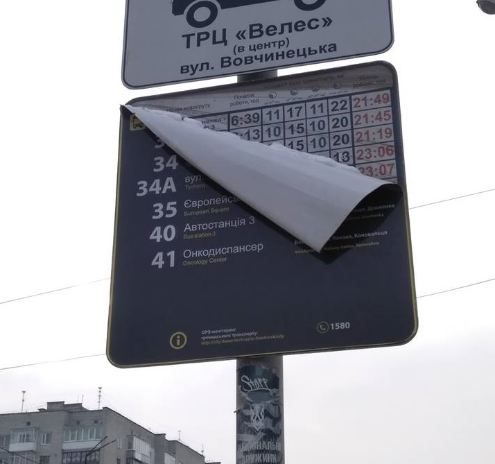 Мешканці міста нарікають на стан таблиць з графіком руху громадського транспорту.