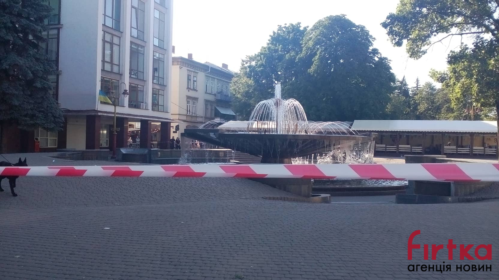 Наразі територію навколо фонтану обгородили стрічкою, людей евакуювали на безпечну відстань.