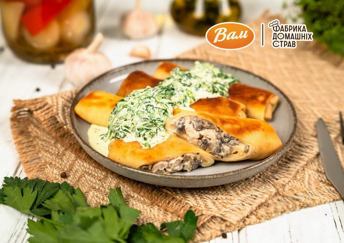 Налисники з яблуками та горіхами, налисники з куркою та грибами, або ж налисники з сиром – це Фабрика домашніх страв ВАМ!