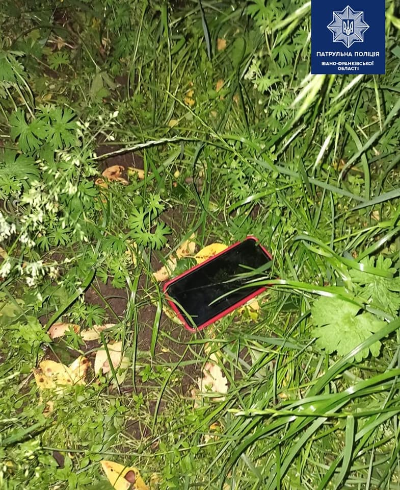 Поряд з ними, у траві, лежав телефон, який ймовірні зловмисники викинули, побачивши патрульних.