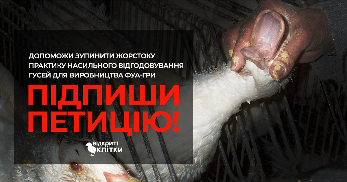 Нагадуємо, що 31 липня офіційно єдина фабрика з виробництва фуа-гра в Україні повідомила про завершення своєї діяльності. Причиною такого рішення керівництва є негуманність процесу виробництва фуа-гра у ставленні до тварин. Така подія ймовірно є наслідком публікації документальних кадрів з виробництва фуа-гра міжнародною організацією “Відкриті клітки Україна”, які також були оприлюднені за кордоном (Independent).