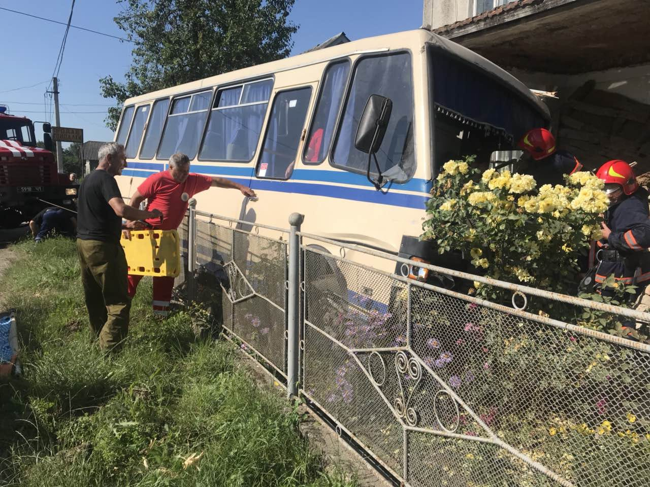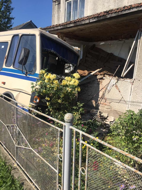 "Водій автобуса сполученням Нижня Липиця-Івано-Франківськ не впорався з керуванням, перетнув смугу зустрічного руху і здійснив наїзд на прибудинкову територію, врізавшись у житловий будинок. Водія доставлено у Галицьку ЦРЛ з легкими тілесними ушкодженнями, - коментують в поліції. - П'ятеро пасажирів не постраждали, претензій не мають. Складається протокол за ст. 124 КУпАП. ".
