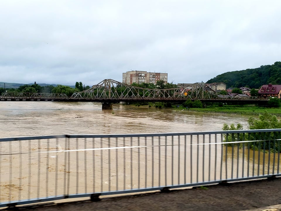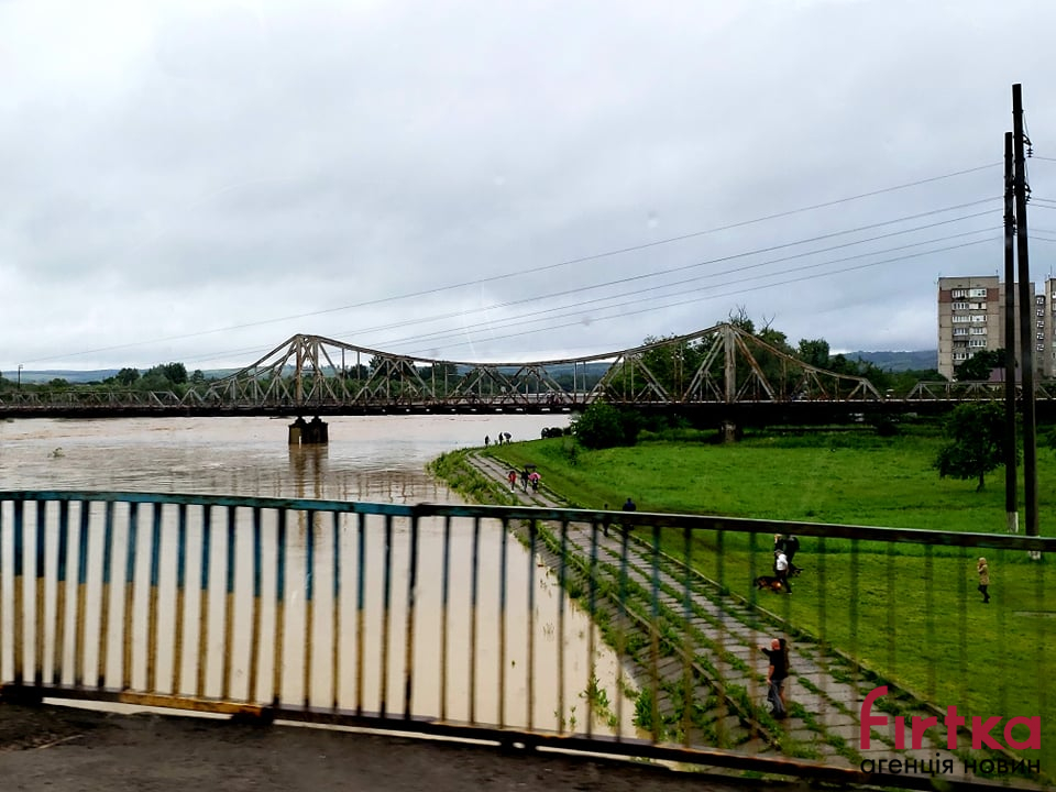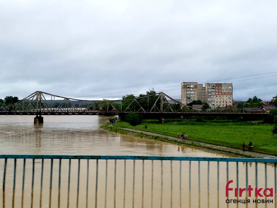 По один бік річки водою вже затопило стадіон. За повідомленням Гідрометцентру 23–24 червня на ріках Івано-Франківської області очікується продовження формування високого дощового паводка на 0.5–1.5м, над поточними, в окремих ділянках на 2,0-2,5м, на річці Прут – в ділянці м.Коломия-держкордон на 2,0–2,5м.