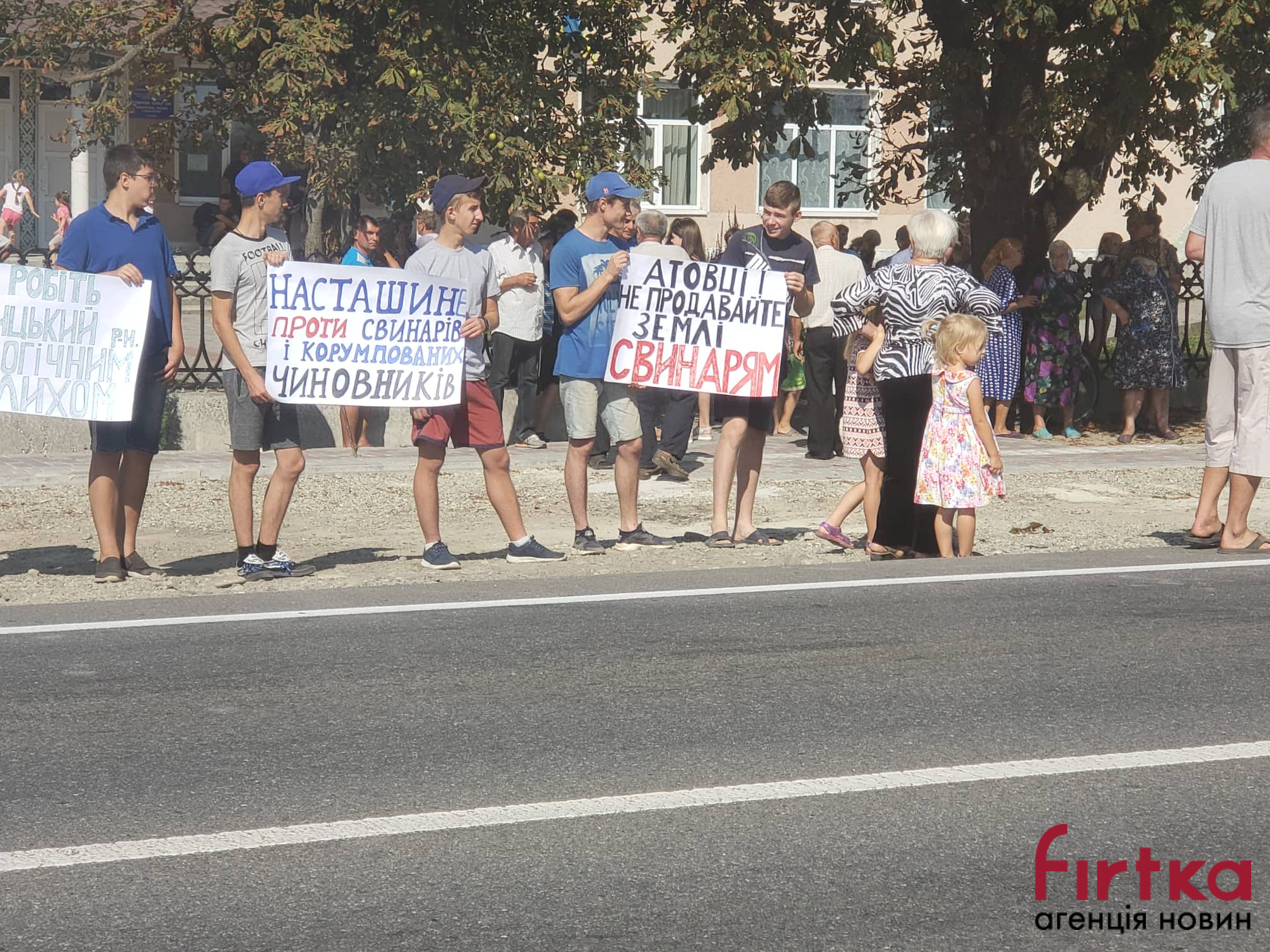 Мешканці села протестують проти будівництва свиноферми між селами Насташине та Конюшки, передає кореспондент Фіртки з місця події.