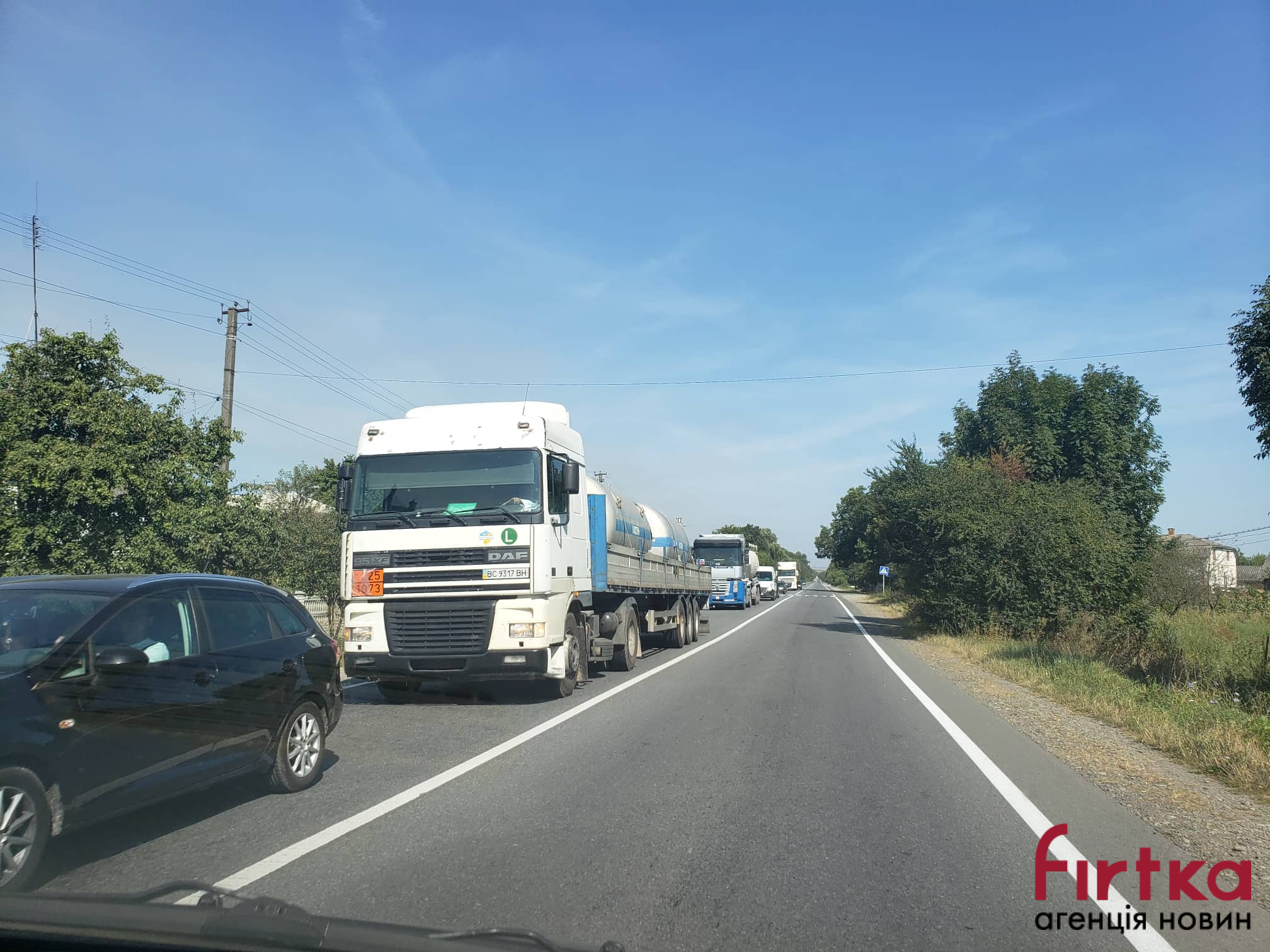 Через перекриття дороги сотні автомобілів стоять у заторах.
