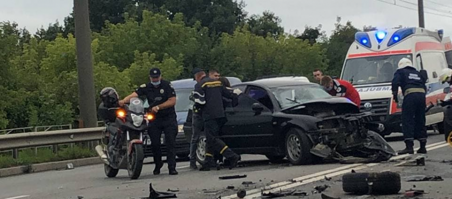 За словами Романа Якиміва, водія чорного авто затиснуло всередині, його витягають рятувальники.