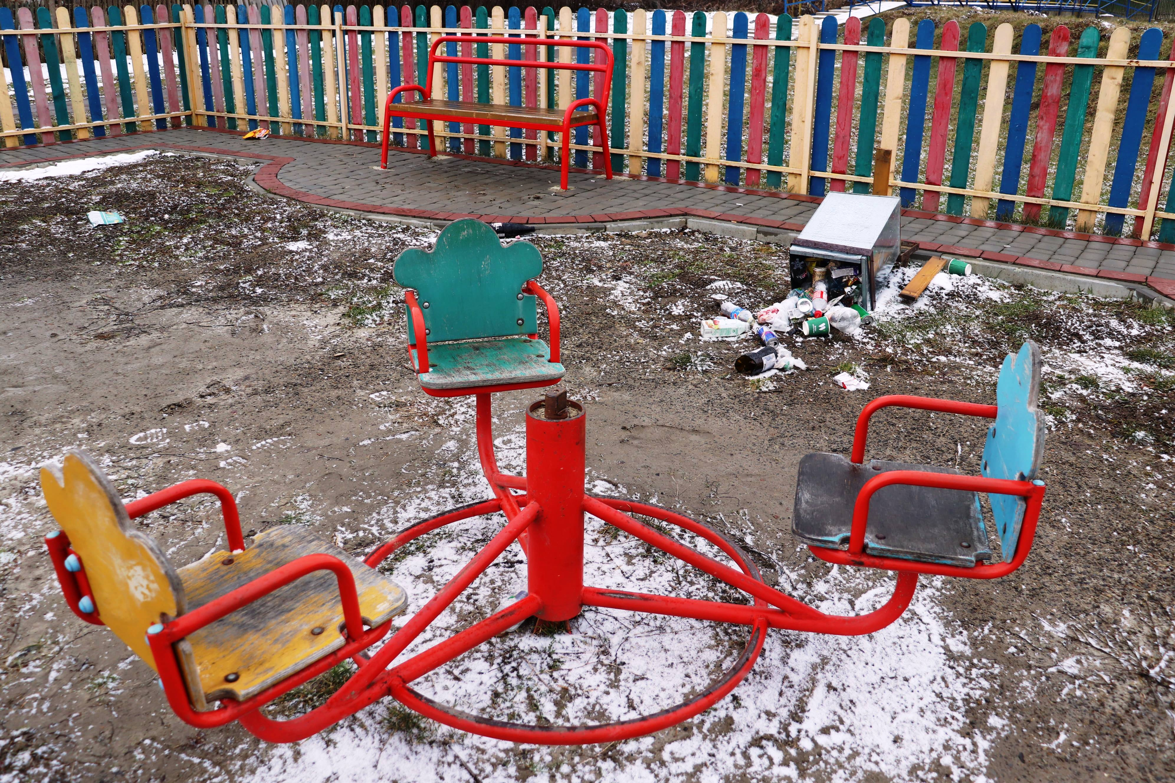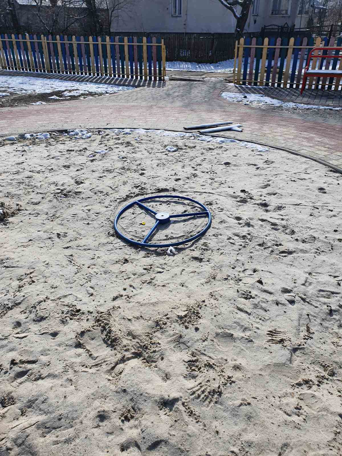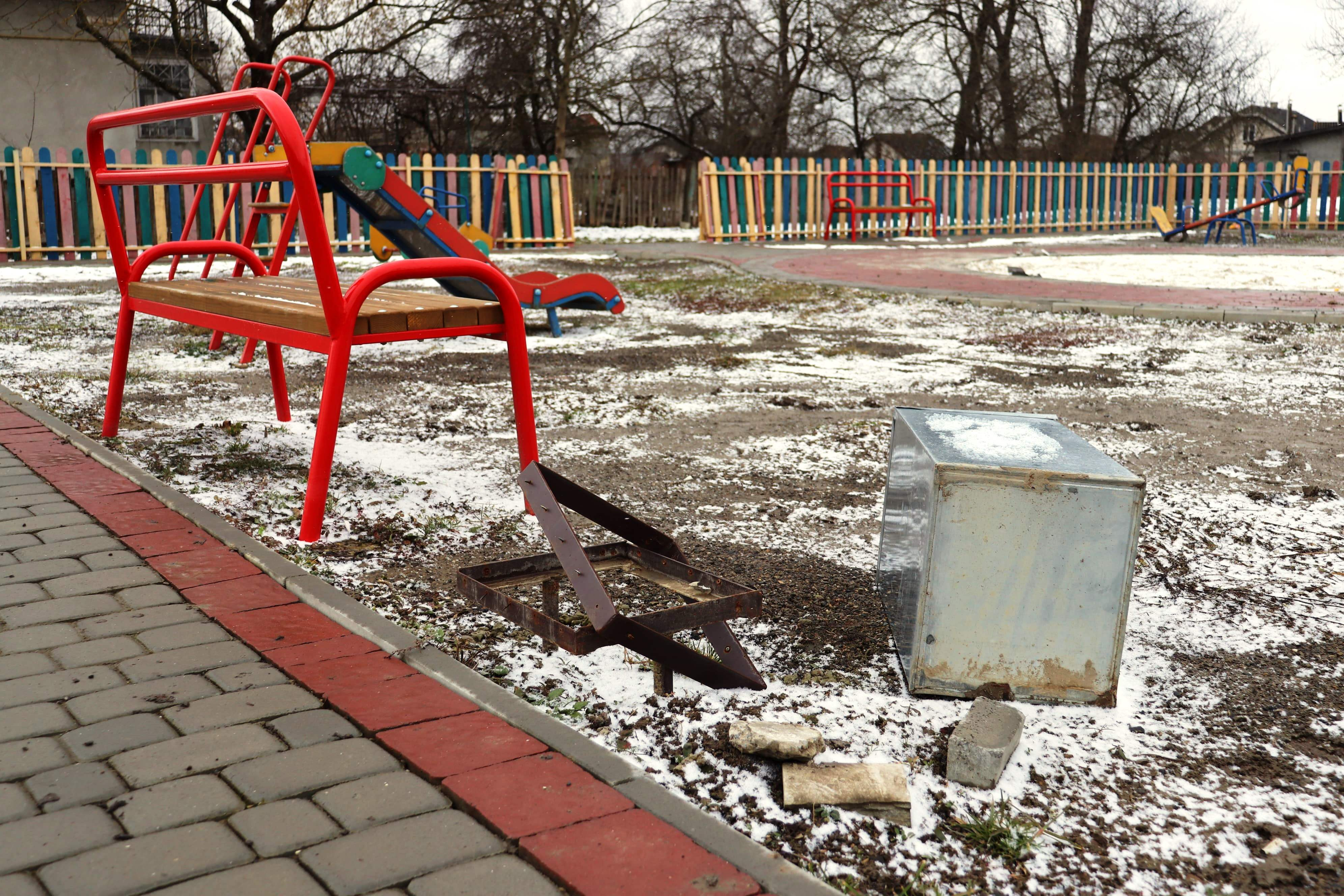 Хулігани понівечили карусель, знищили всі урни для сміття, зламали елементи огорожі майданчика, виламали вхідну хвіртку разом із завісами, а також заїхали автомобілем на територію майданчика, пошкодивши бруківку та клумби.
