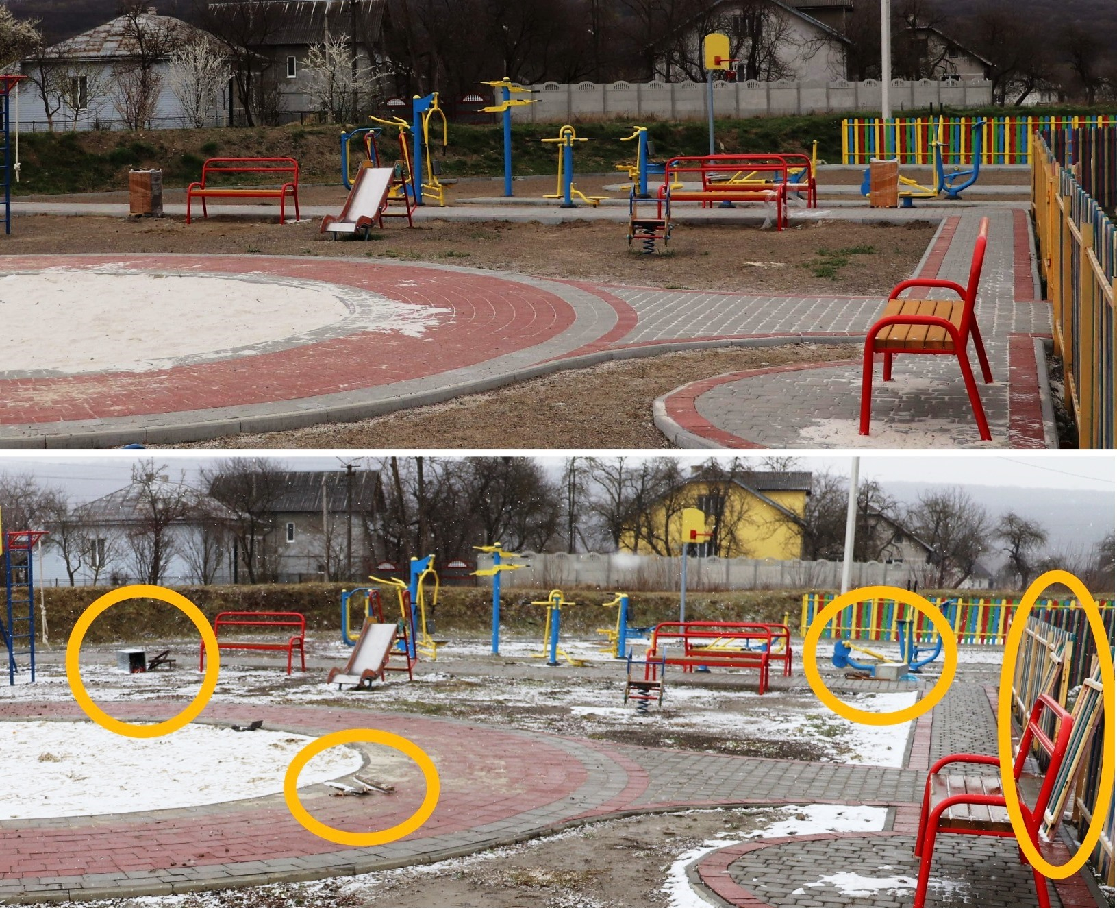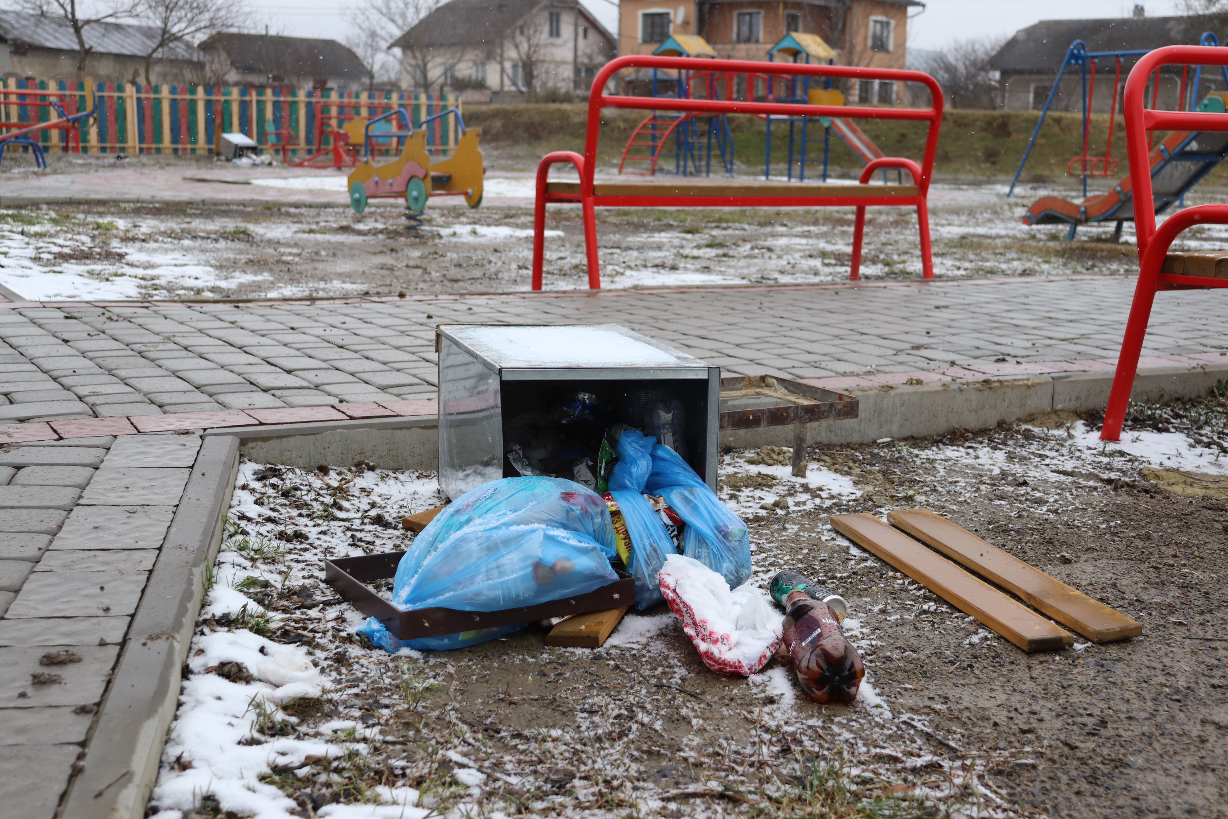 У ніч з 6 на 7 березня 2021 року невідомі особи знищили та пошкодили об’єкти на території дитячого майданчика по вул. Коцюбинського у Ямниці.