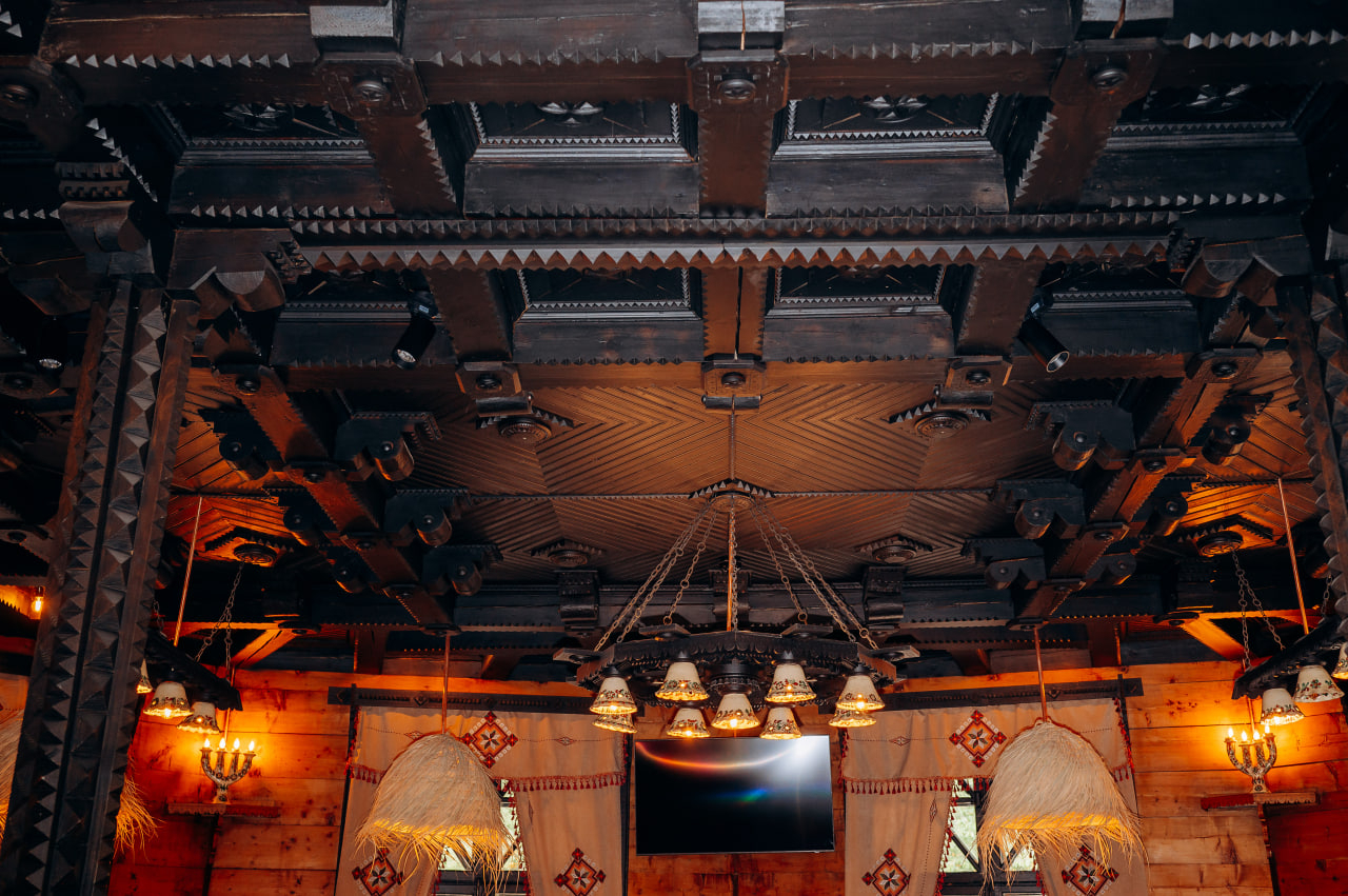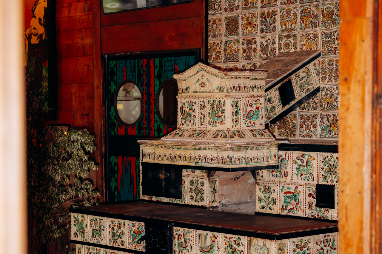 Дерев’яні зруби очищували вручну, відновлювали дах і зберегли автентичні інтер’єрні елементи — косівські кахлі та глиняний посуд.