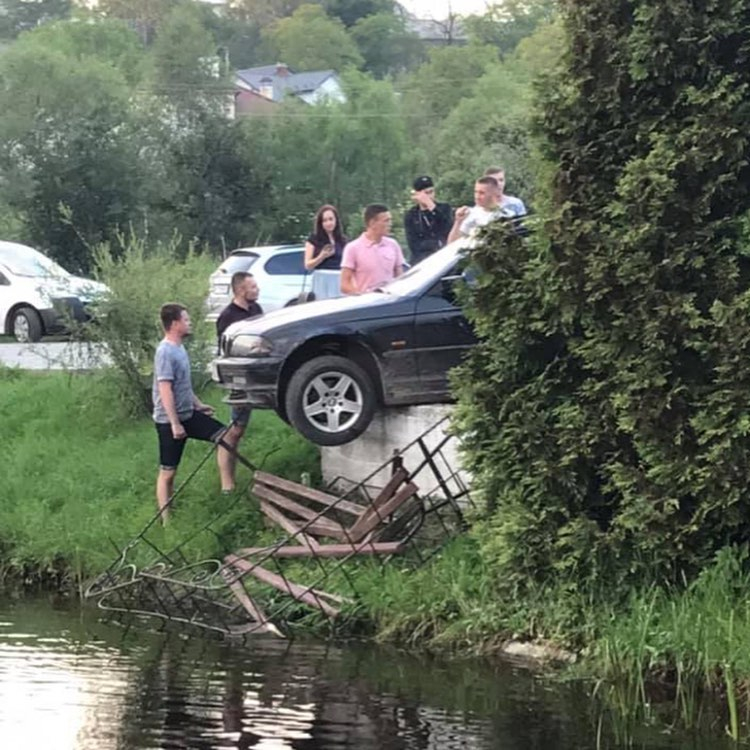 Інцидент трапився поблизу ресторану “Вежа”. Машину від падіння в озеро вберегла лавка.