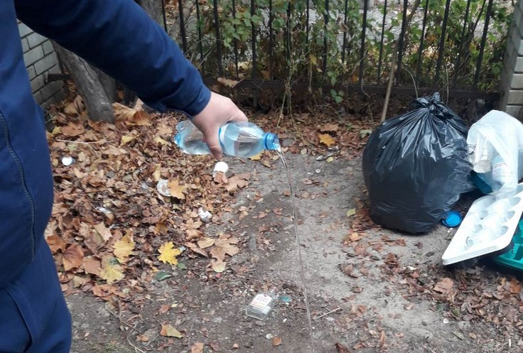 "Підійшовши до пакету з підозрою на вміст небезпечних та заборонених предметів та заглянувши в нього виявили скляну та пластмасову тару в яких знаходилась прозора рідина невідомого походження з явним запахом спирту. Після опитування людей, які були поруч, власника даного пакету не виявили", - йдеться у повідомленні.