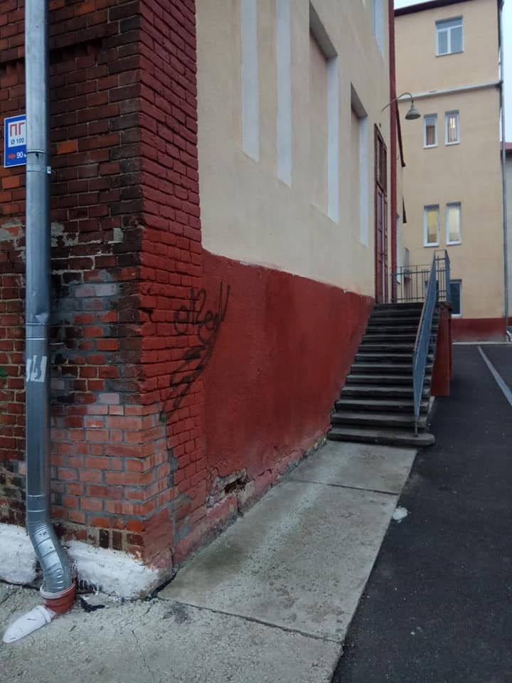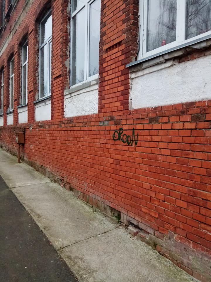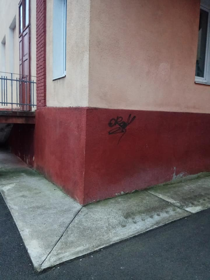 "Сьогодні, йдучи на роботу, побачила "розмальовки" на будівлі нашої школи. Розумію, що знайти автора цього "мистецького витвору" майже нереально, але... Чому?".