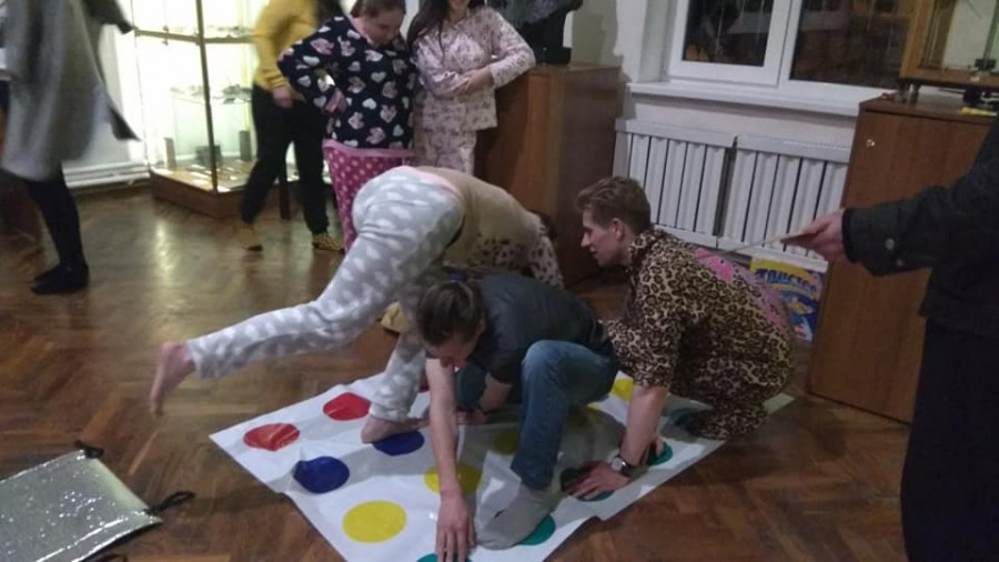 В стінах краєзнавчого музею відбувалися розважальні та цікаві дійства. Учасники «Ночі у музеї» грали у різні ігри, зокрема джанго, доміно, твістер, дивилися фільми, пили каву на вугіллі і пригощалися солодощами.