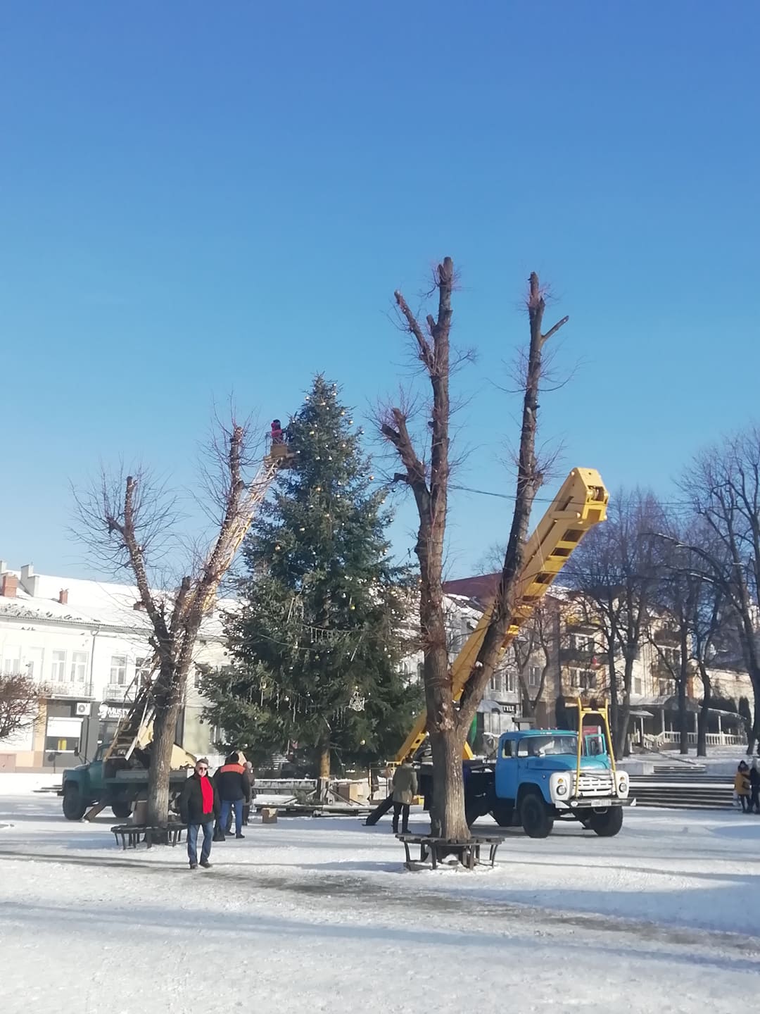 Сьогодні, 21 січня, у Калуші почали розбирати новорічну ялинку на площі Героїв. Заберуть із площі також різдвяну шопку.