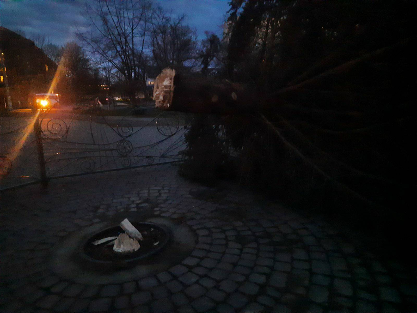 У Калуші сильний вітер зламав міську ялинку (ФОТО)