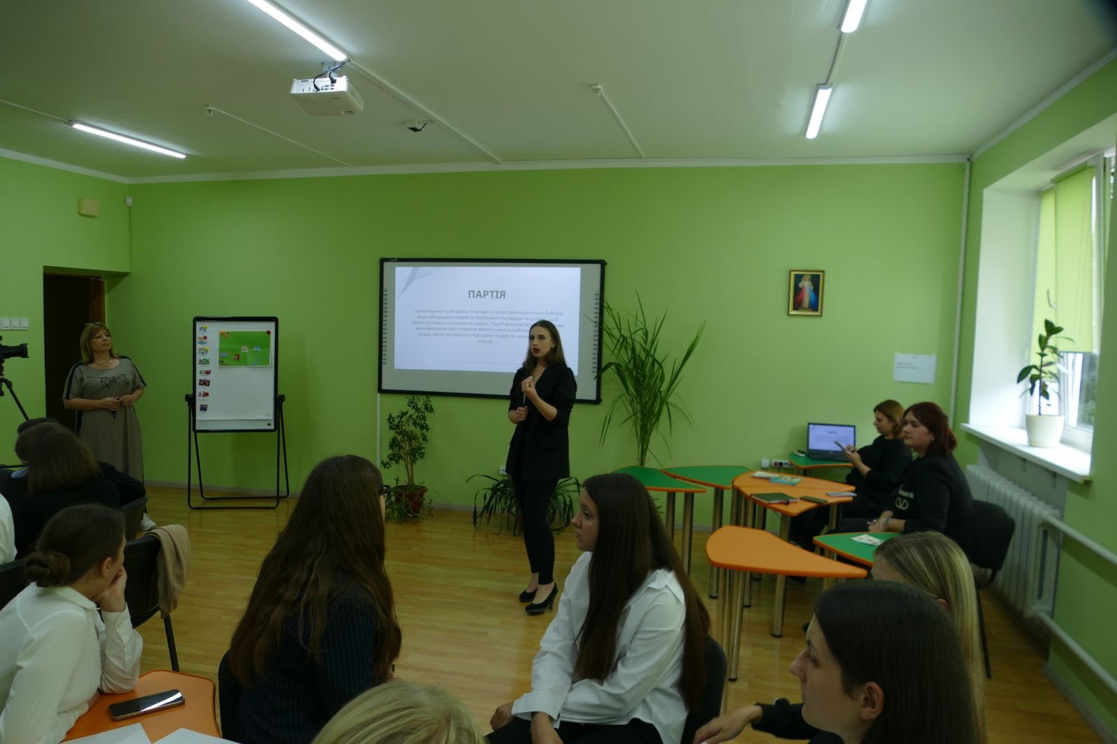 «Зустріч збіглася із Міжнародним днем демократії. До заняття долучені старшокласники: учасники учнівського самоврядування, активні, успішні ліцеїсти. Під час першого заняття вони отримали базові знання про основи державного устрою, функціонування демократичного суспільства.