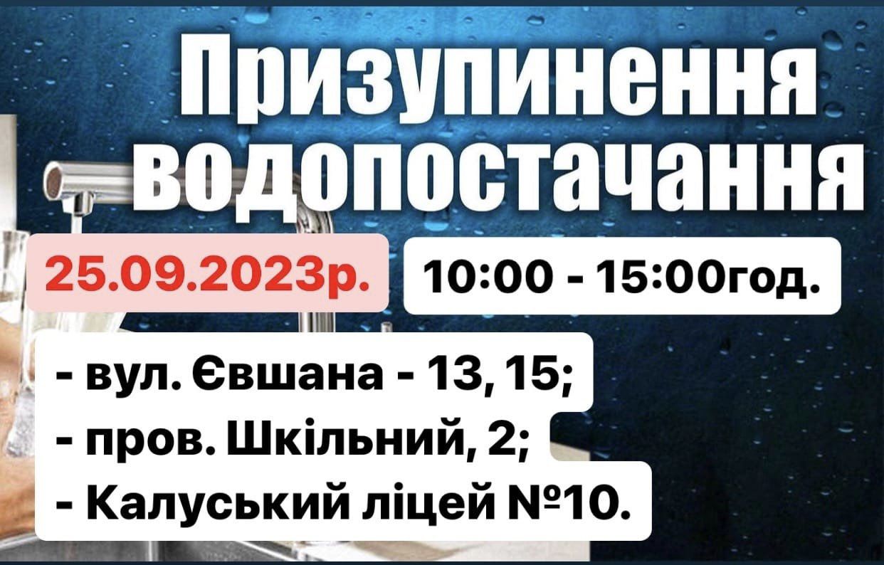 У Калуші, 25 вересня тимчасово призупинять водопостачання з 10:00 до 15:00.