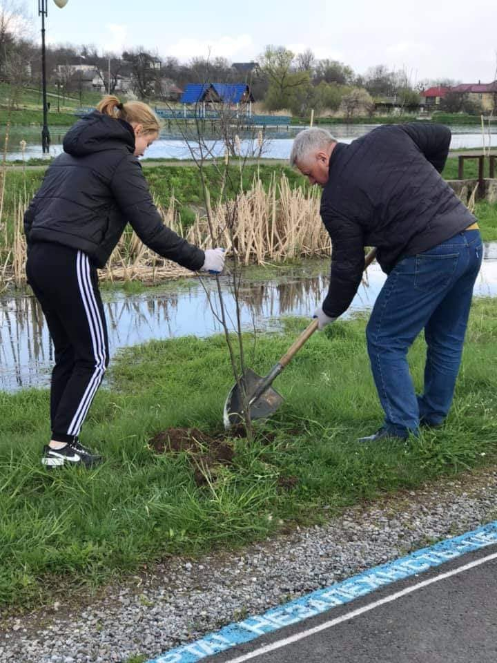 До висадки дерев долучилася і заступниця міського голови Надія Гуш, яка зізналася, що дерева садить не вперше. Адже живе в приватному секторі, тож, має власний город і сад.