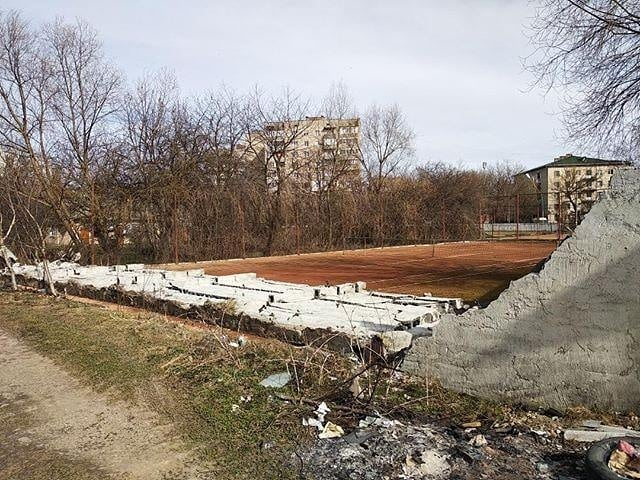 У Калуші по вул. Рубчака стіна на тенісному корті не витримала сильного натиску вітру і впала.