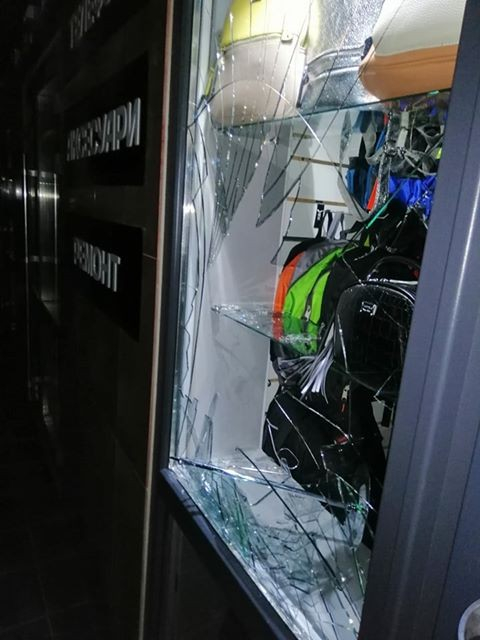 Як видно на світлинах, злодій розбив вітрину і намагався викрасти жіночі сумки.