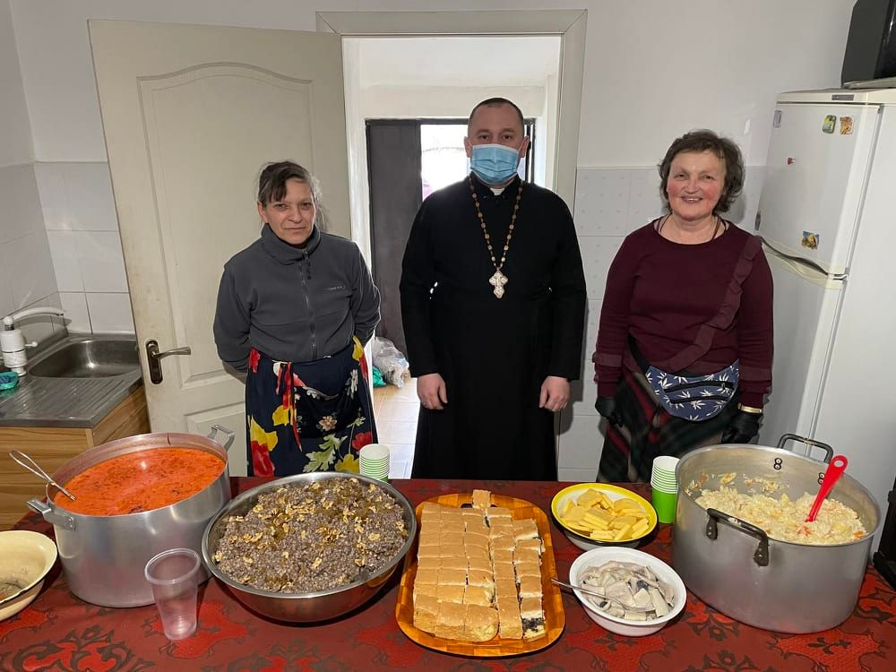 вященник о. Іван Бігун разом з о. Олександром Марківом-молодшим та волонтерками храму Світланою Королик та Наталією Перхун організували благодійний обід з традиційних страв, які готують на Святвечір, для 80-ти людей, які перебувають в складних життєвих обставинах. Їх почастували кутею, пампухами та пісним борщиком.