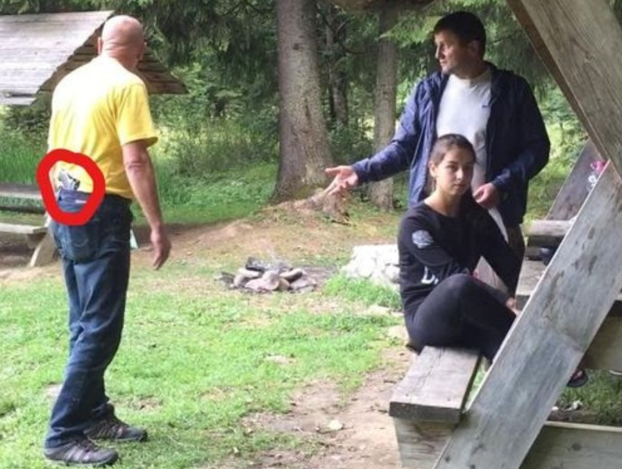 Чоловік, не надавши жодних документів, аргументував свій вчинок тим, що це його територія. Група туристів пояснила, що за 20 хвилин завершать обід і покинуть територію. Згодом незадоволений подальшим розвитком подій, погрожував калушанам зброєю.
