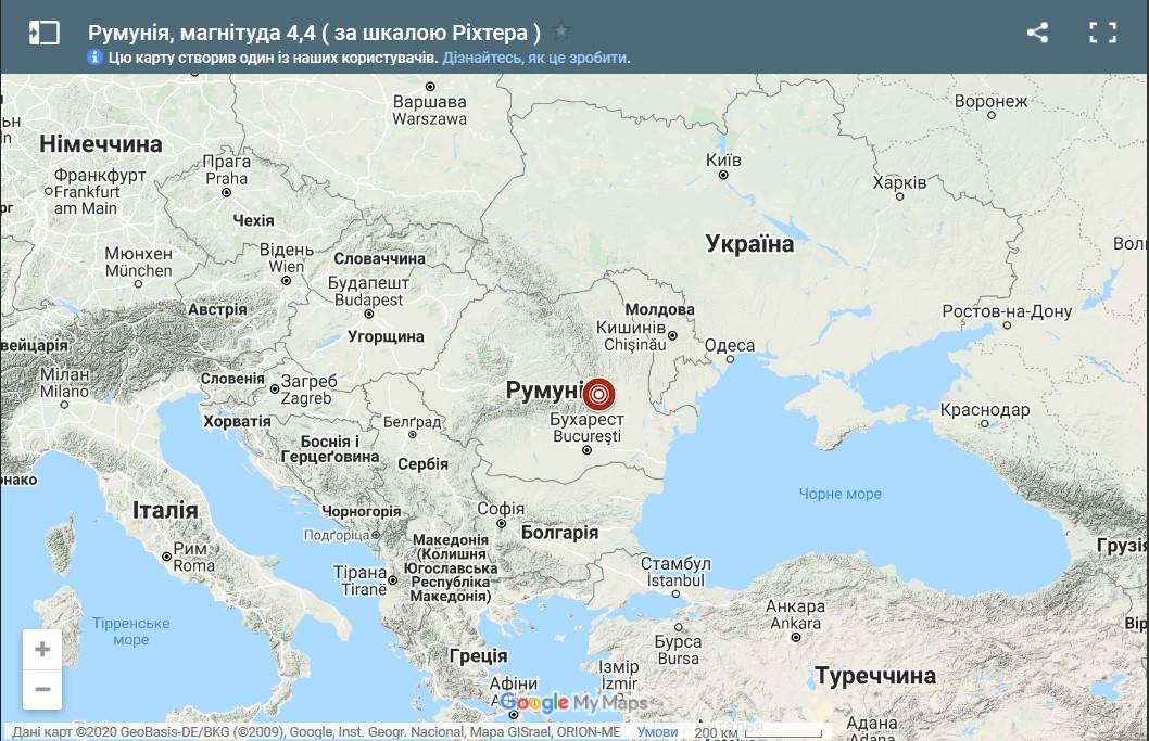 Сьогодні, 2 червня, Головним центром спеціального контролю зареєстровано землетрус магнітудою 4,4 за шкалою Ріхтера у румунських Карпатах.