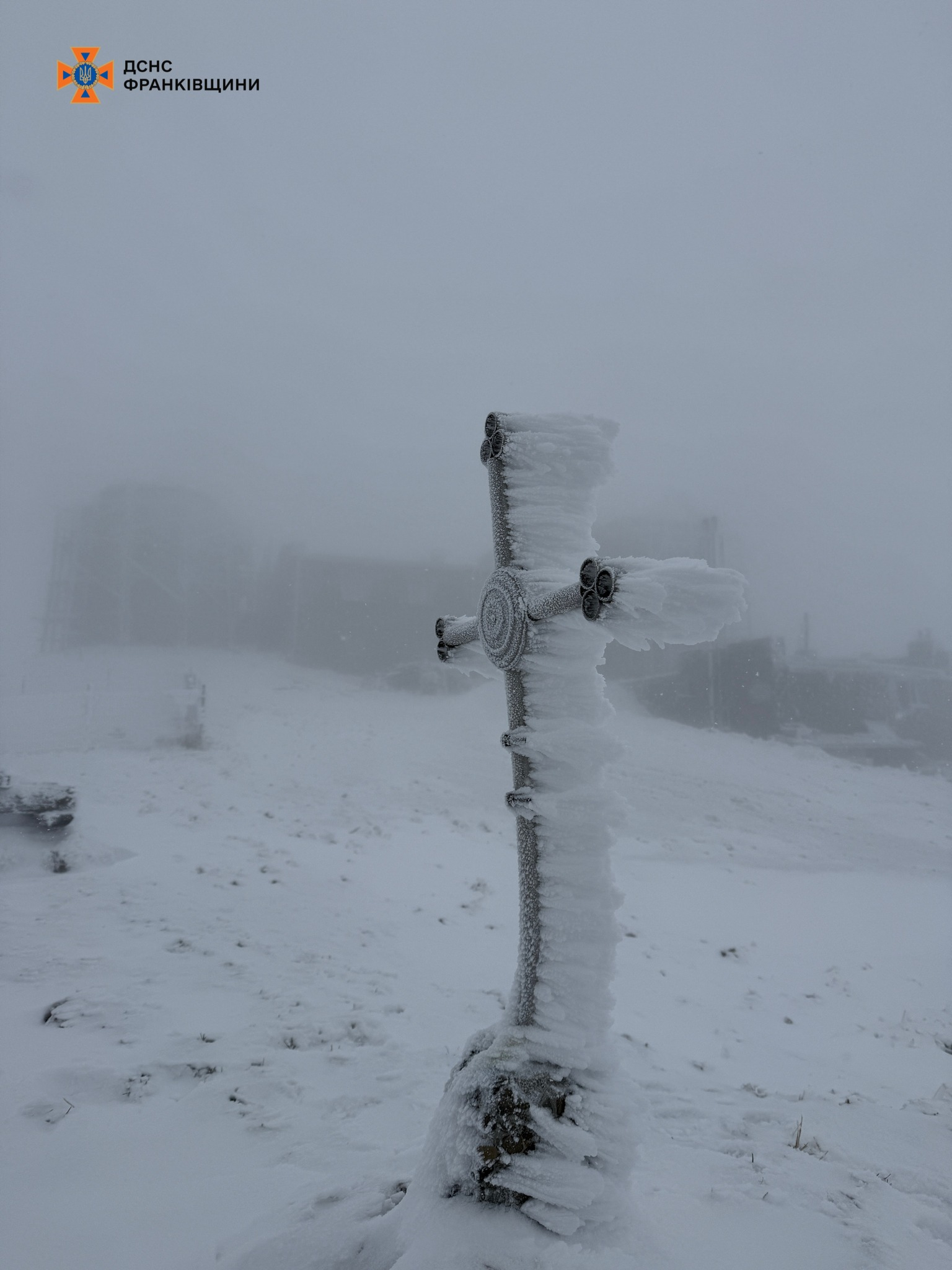 Станом на 9:00 год 30 вересня на горі Піп Іван Чорногірський зафіксували сніг, північний вітер швидкістю 4 м/с та температуру повітря –3°C.