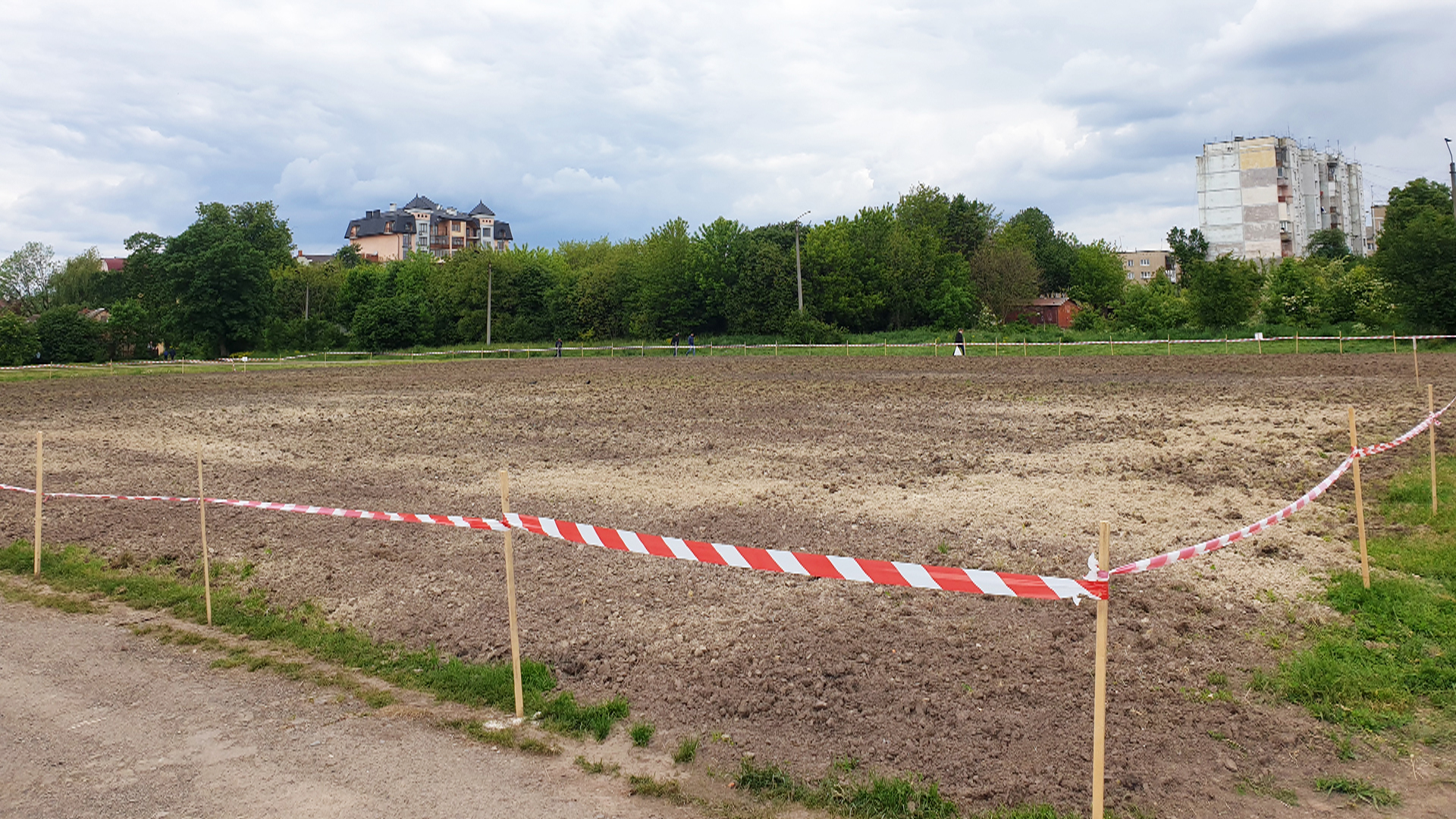 Поле було геть занедбане, тому спочатку впорядкували газон. Тепер чекатимуть, коли підросте трава.