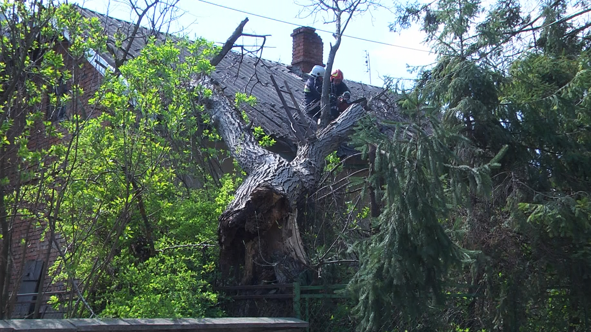 На вулиці Родини Крушельницьких старе дерево впало на хату пенсіонерки та поламало шифер.