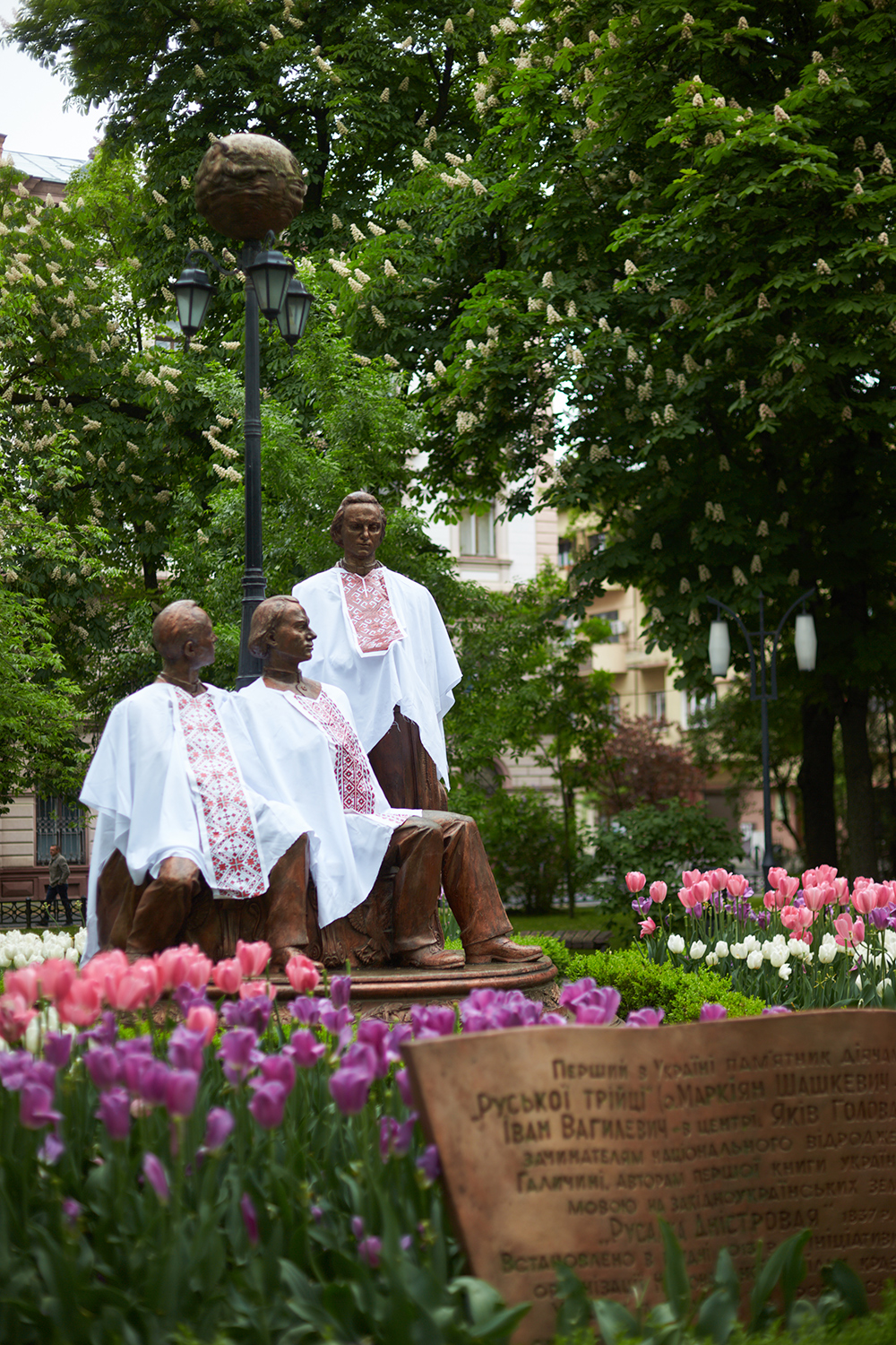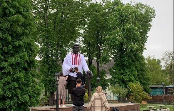 Одягли Маркіяна Шашкевича, Якова Головацького та Івана Вагилевича у вишиті сорочки. Тепер вони до свята готові!", - написав Руслан Марцінків.