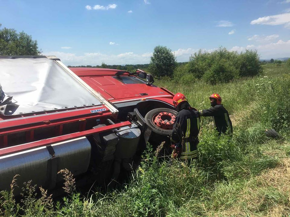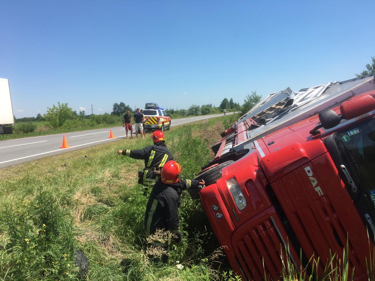 На вул. Об’їзна водій вантажного автомобіля DAF, не впоравшись з керуванням з’їхав в кювет, де авто перекинулось на ліву сторону, інформує Фіртка.