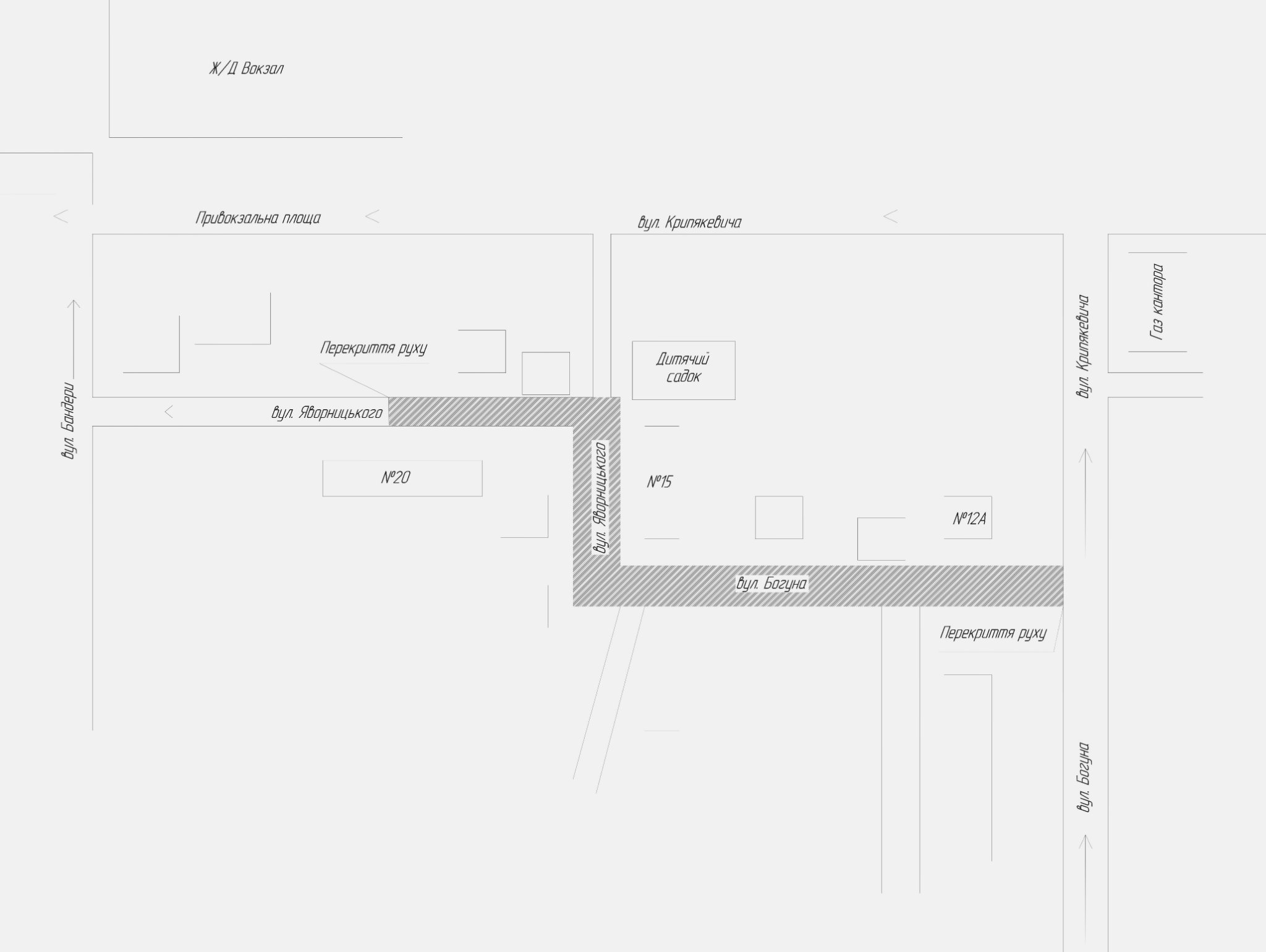 Об’їзд місця проведення будівельно-монтажних робіт здійснюватиметься по вулицях Богуна, Крип’якевича та Привокзальній площі.