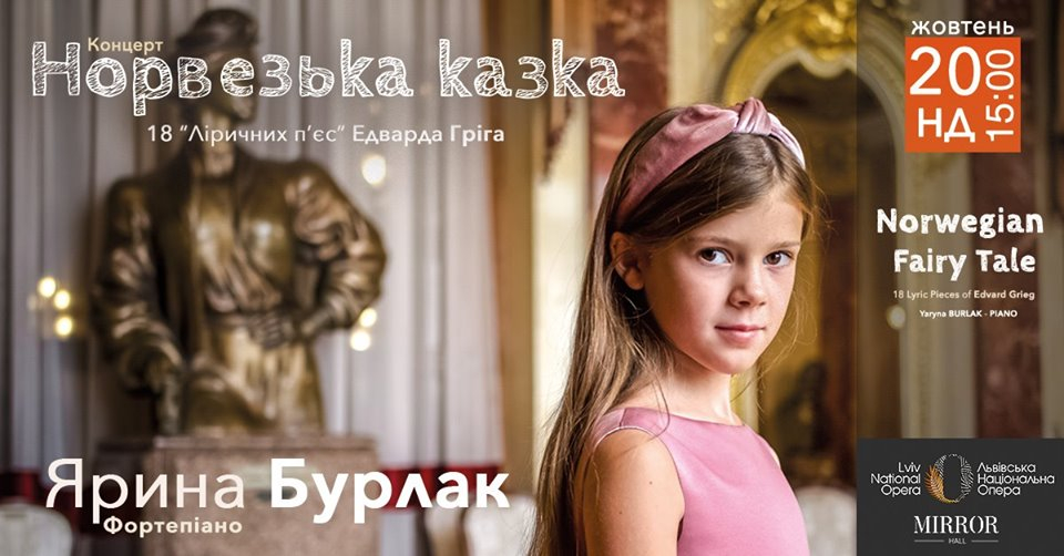 У неділю, 20 жовтня, в Дзеркальній залі Львівської національної опери відбудеться концерт "Норвезька казка" 10-річної піаністки з Коломиї Ярини Бурлак.