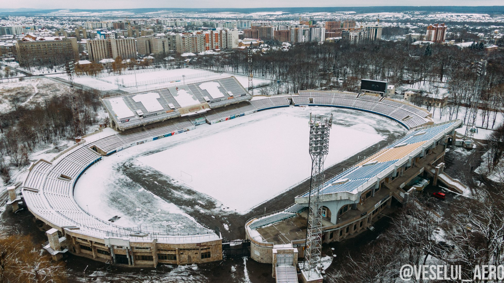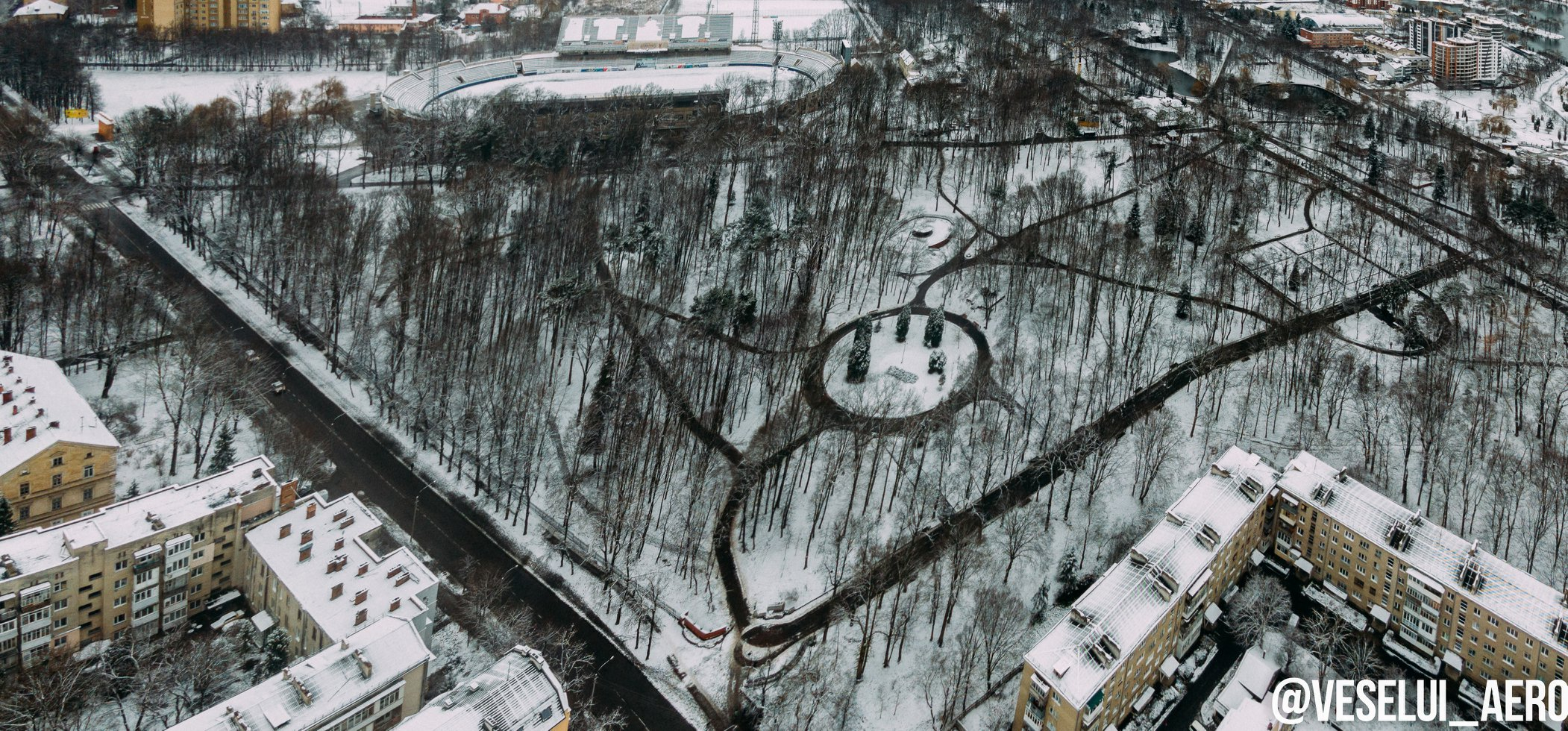 У мережі опублікували фото засніженого франківського парку з висоти пташиного польоту