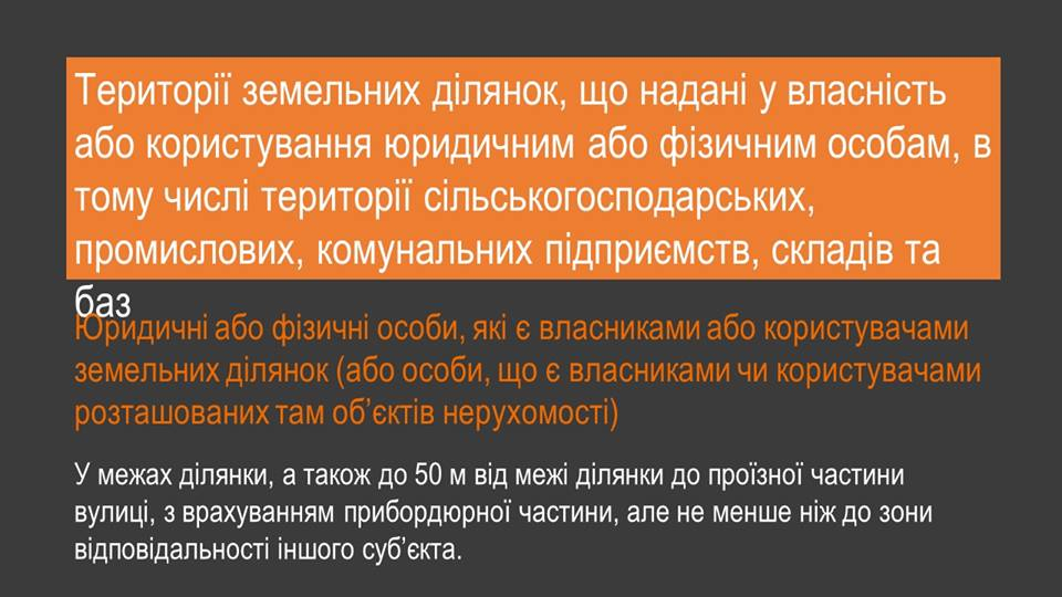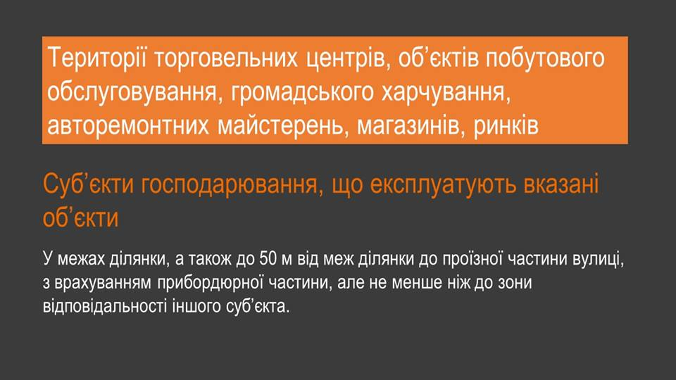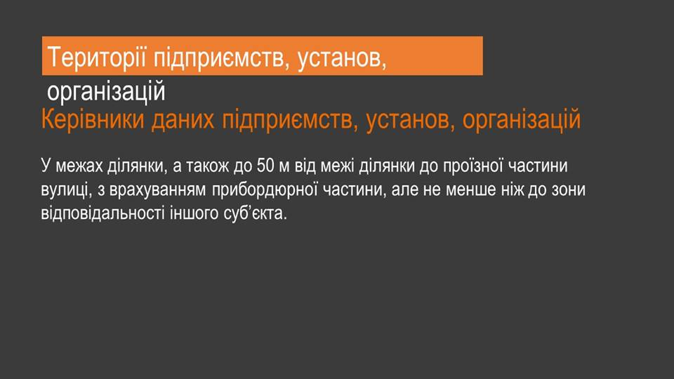 "То хто відповідає за прибирання пішохідних зон? Давайте з'ясовувати в ілюстраціях! Кожен має усвідомити свою відповідальність за ту частинку свого міста. І я невимовно вдячний тим людям, які її вже усвідомили та сумлінно дотримуються чистоти. Великі справи творяться дрібними кроками", - йдеться у дописі.