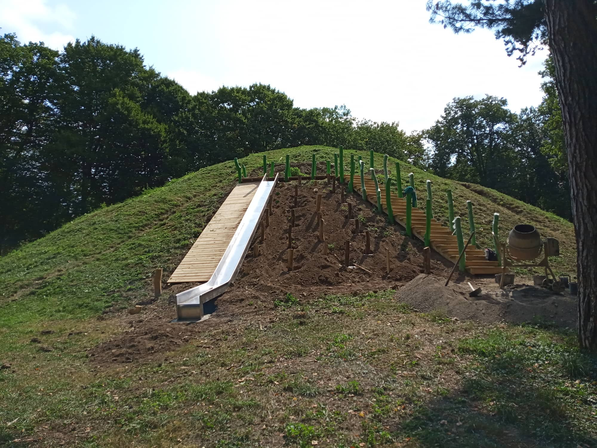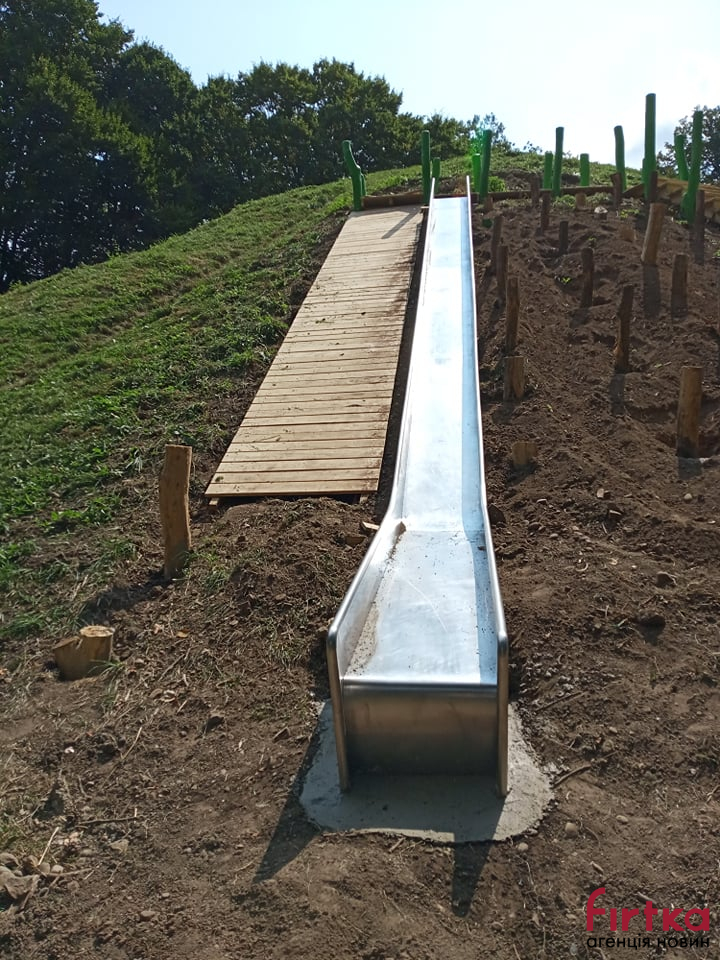 "Вже побудована велика пісочниця з ігровим будиночком для діток та лавочками для батьків. Це для молодшого віку. А це буде спортивно-ігрова зона для дітей старшого віку. Це буде платформа на горі, на яку можна піднятися або по сходах, або по канату, тобто будуть такі елементи скалелазання, а також буде гірка для спуску. Це буде такий дитячий комплекс", - пояснила Руслана Василюк.
