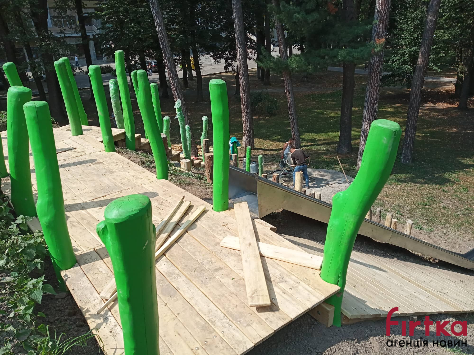 У міському парку Івано-Франківська облаштовують ще одну ігрову зону для дітей.