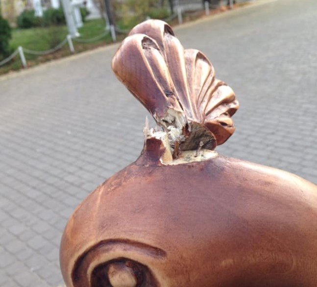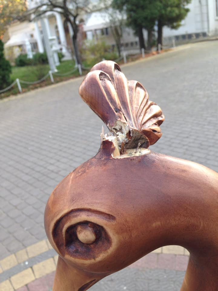 "Ось так у нас відносяться до того, що зроблене і подароване з любов’ю. Троє дорослих гуляли вчора близько 20.30 год з дитиною і собаками. При батьках дитина залізла на фігуру павича і відламала елемент фігури. Це не п’яні, не вандали, а з вигляду культурні, інтелігентні люди", - написала Руслана Василюк.