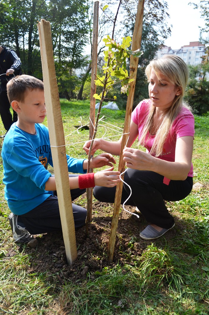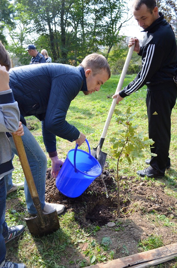 Під час акції мешканці Івано-Франківська та родини вимушених переселенців посадили 40 саджанців дуба, згуртувавши таким чином громадян Сходу та Заходу України.