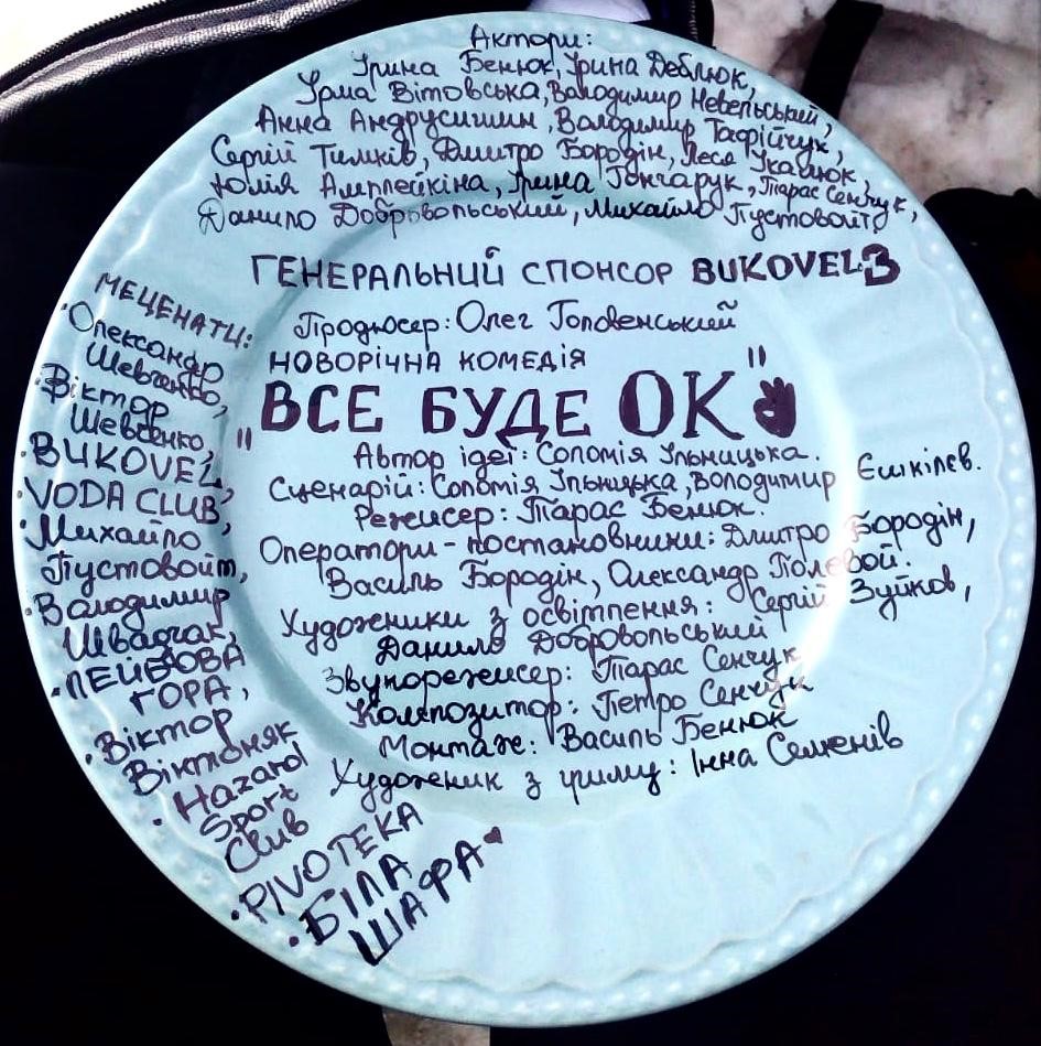 В зйомках кіно є традиція – «на удачу» розбивати тарілки з прізвищами всіх учасників проєкту перед зйомками першого кадру фільму. Тарілки, які розбили перед зйомками фільмів «Патерн» та «Все буде Ок!», їхні частинки учасники розібрали на згадку