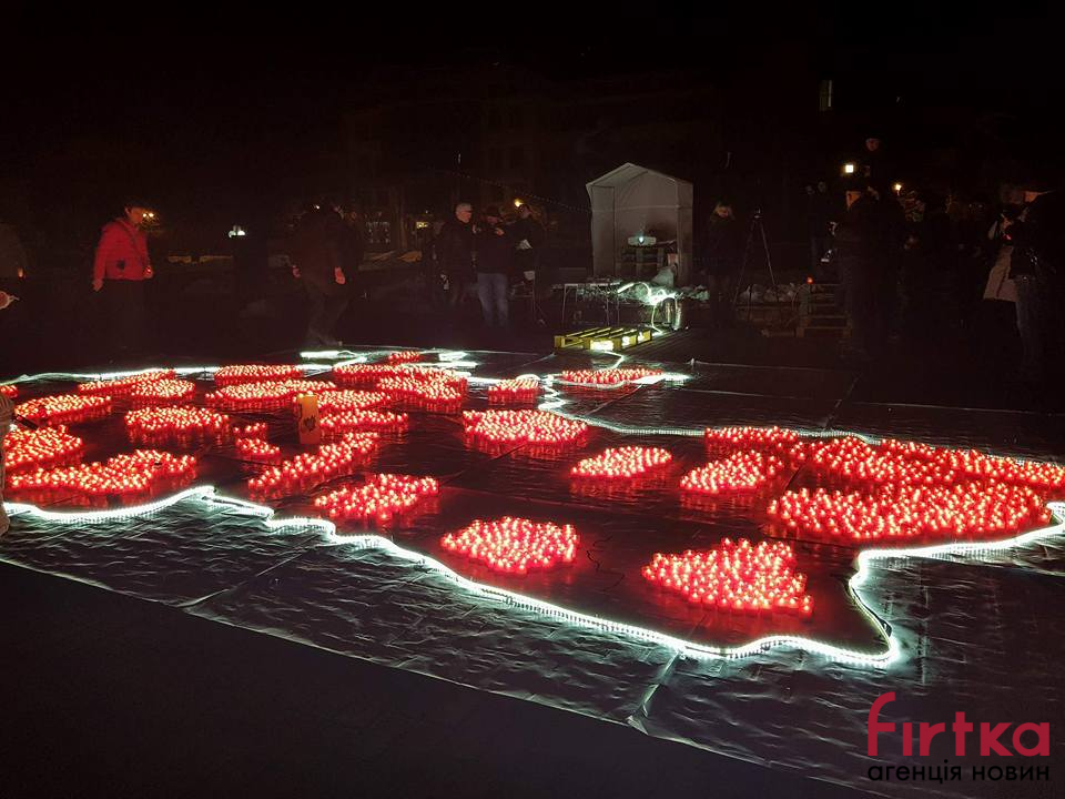 У пам'ять про Героїв Небесної Сотні та воїнів АТО на площі перед адмінбудинком в Івано-Франківську десятками лампадок засяяла мапа України.